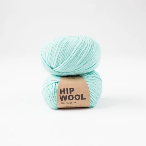 Hip Wool Modest mint PrisNOK79,00 inkl. mva. Kjøp Pastell mintfarget garn- 100 % Ull. Pinnestr 5-8 mm mm. 50 g = 80 m.