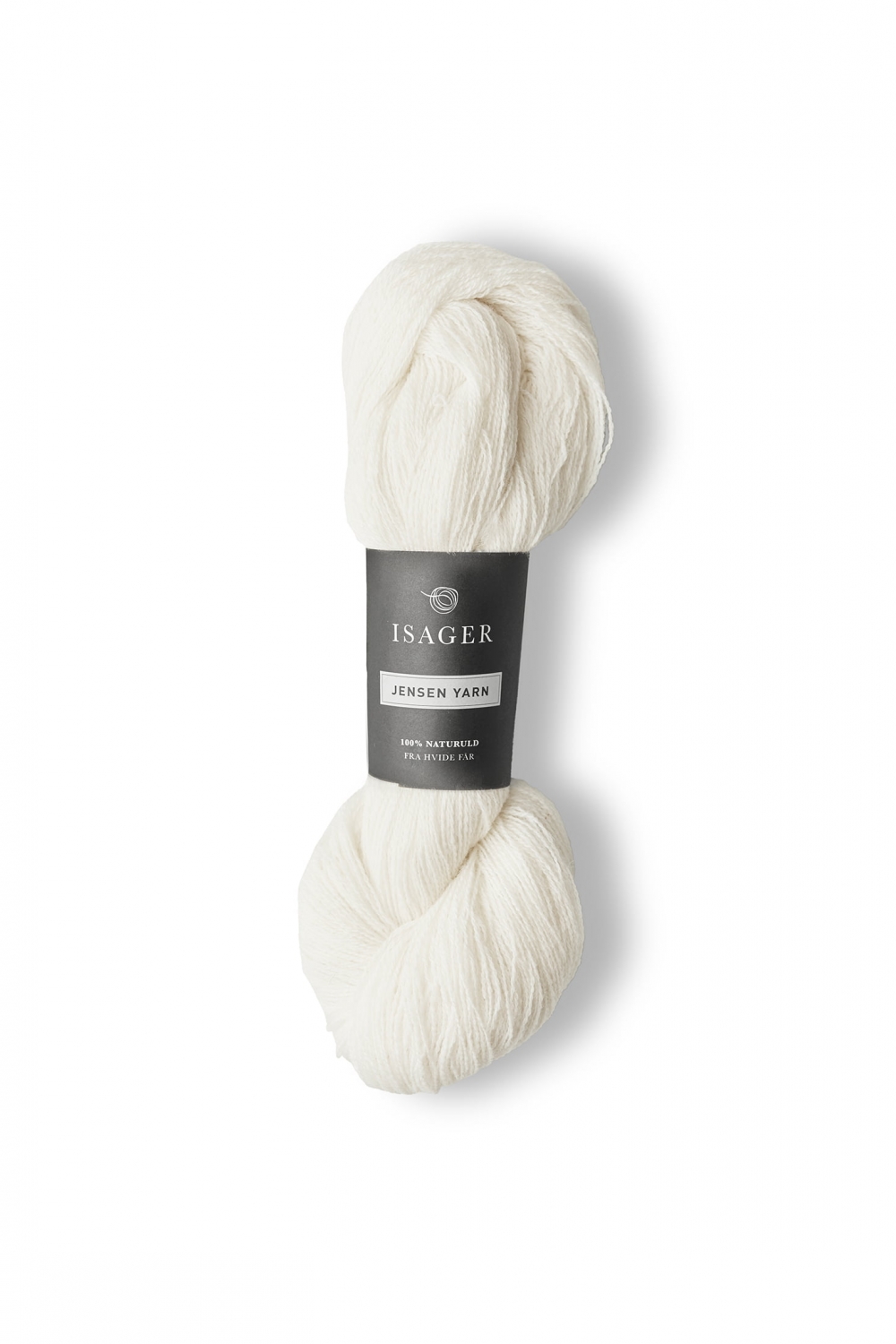 Jensen Yarn fra Isagerer en fantastisk og ren ulltråd spunnet i Danmark. Et stabilt tretrådsgarn, fast og jevn spunnet, og gjør seg godt til strukturstrikk. Strikket med en tråd alene anbefales pinne 3,5 m. OBS! Vi deler 100 grams hesper ved kjøp av 50 g