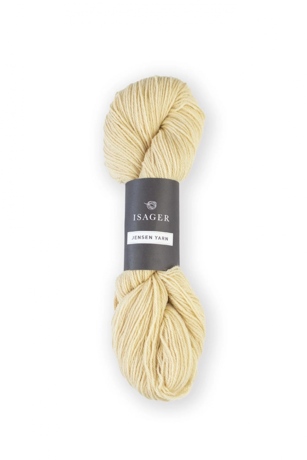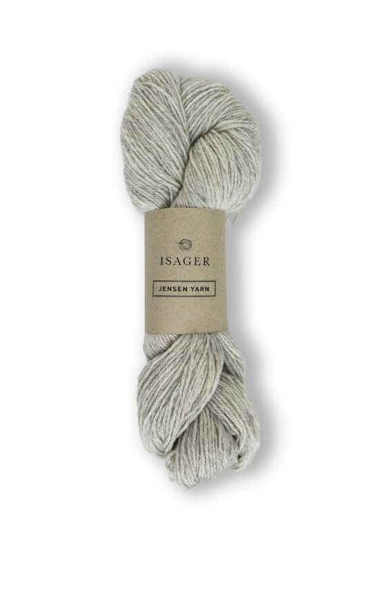 Jensen Yarn fra Isager er en fantastisk og ren ulltråd spunnet i Danmark. Et stabilt tretrådsgarn, fast og jevn spunnet, og gjør seg godt til strukturstrikk. Strikket med en tråd alene anbefales pinne 3,5 m.