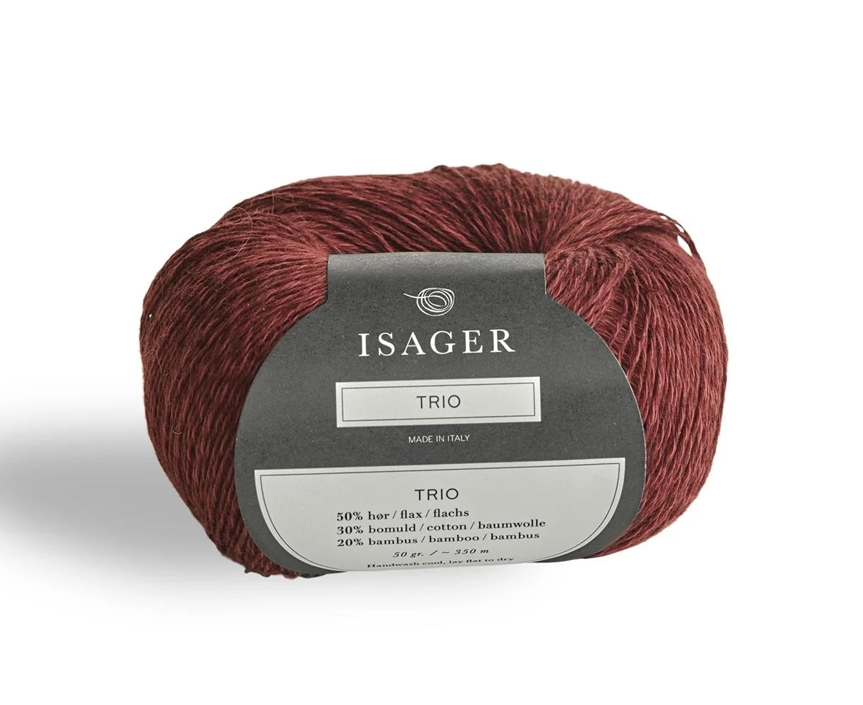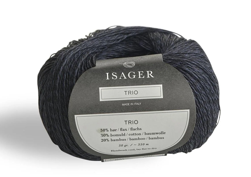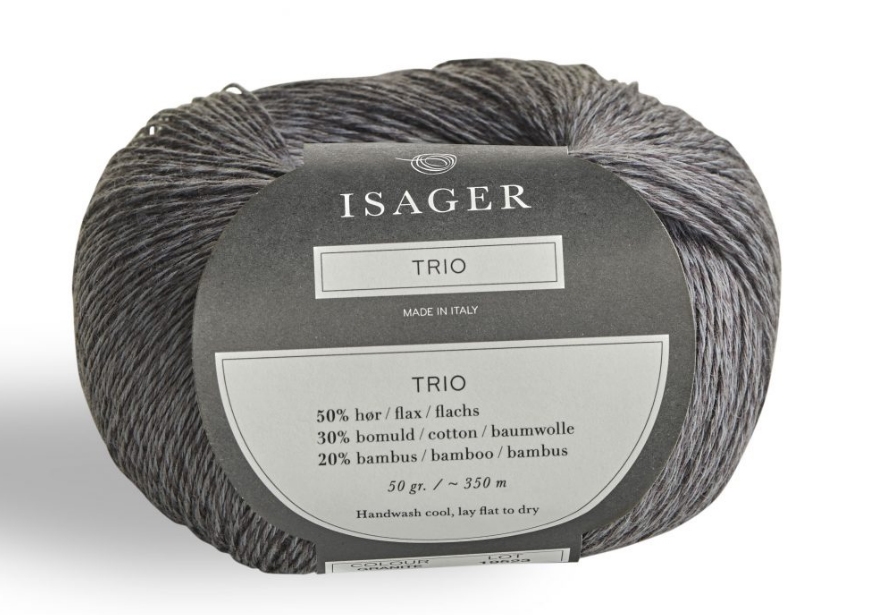 Isager Trio 1 Linen PrisNOK93,00 inkl. mva. Kjøp TRIO 1 50% hør, 30% bomuld og 20% lyocell Løbelængde: 350 m / 50 gr.