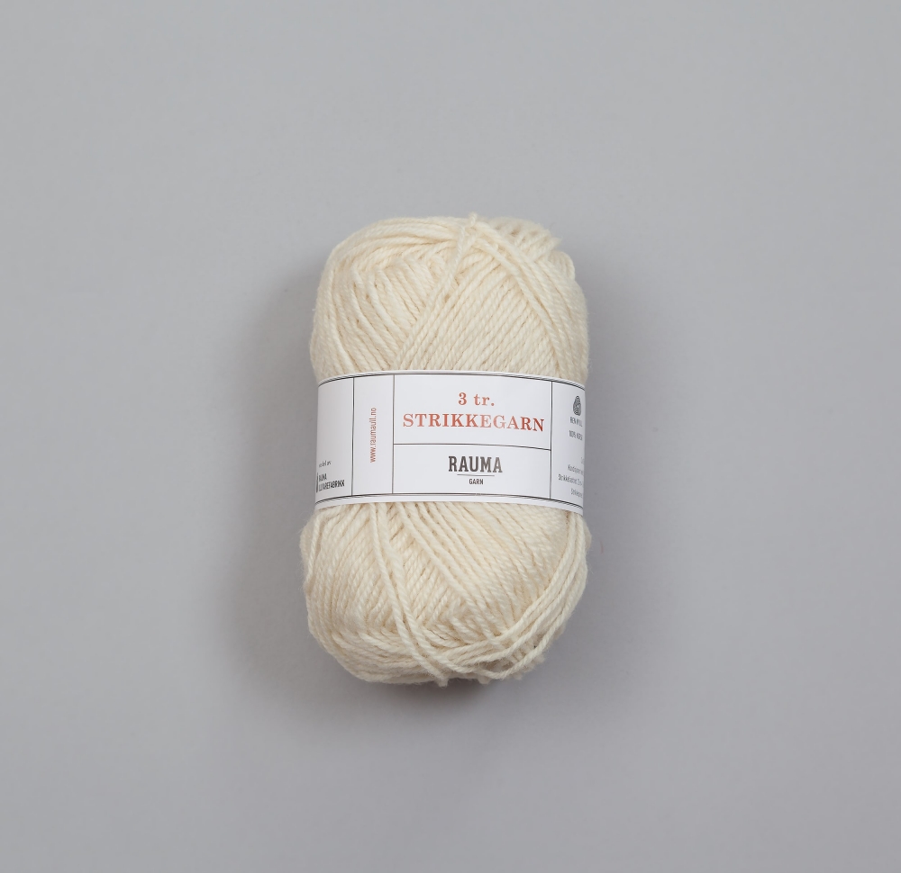 3-tråds Strikkegarn 100% norsk ull 108m / 50gr 22 m = 10cm 3.5 mm