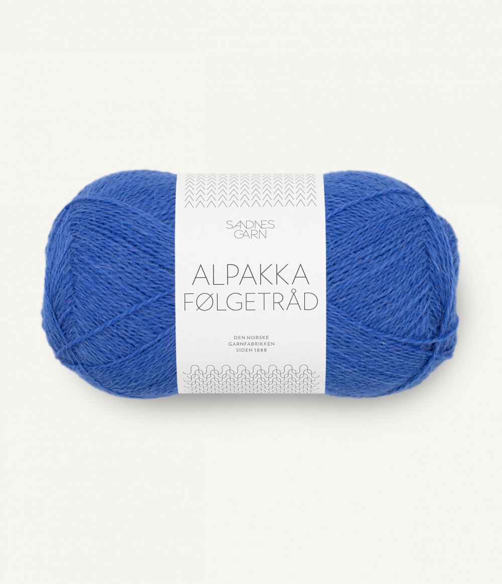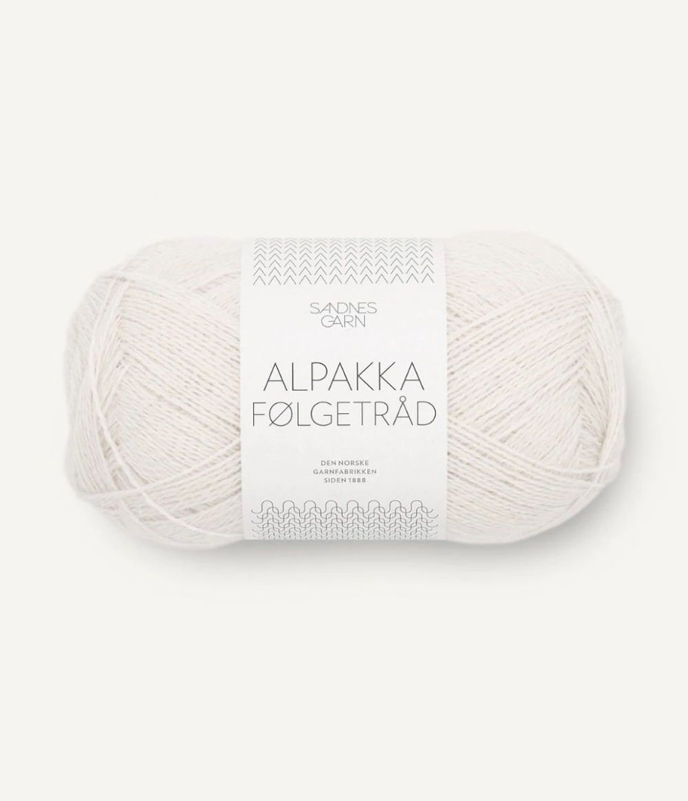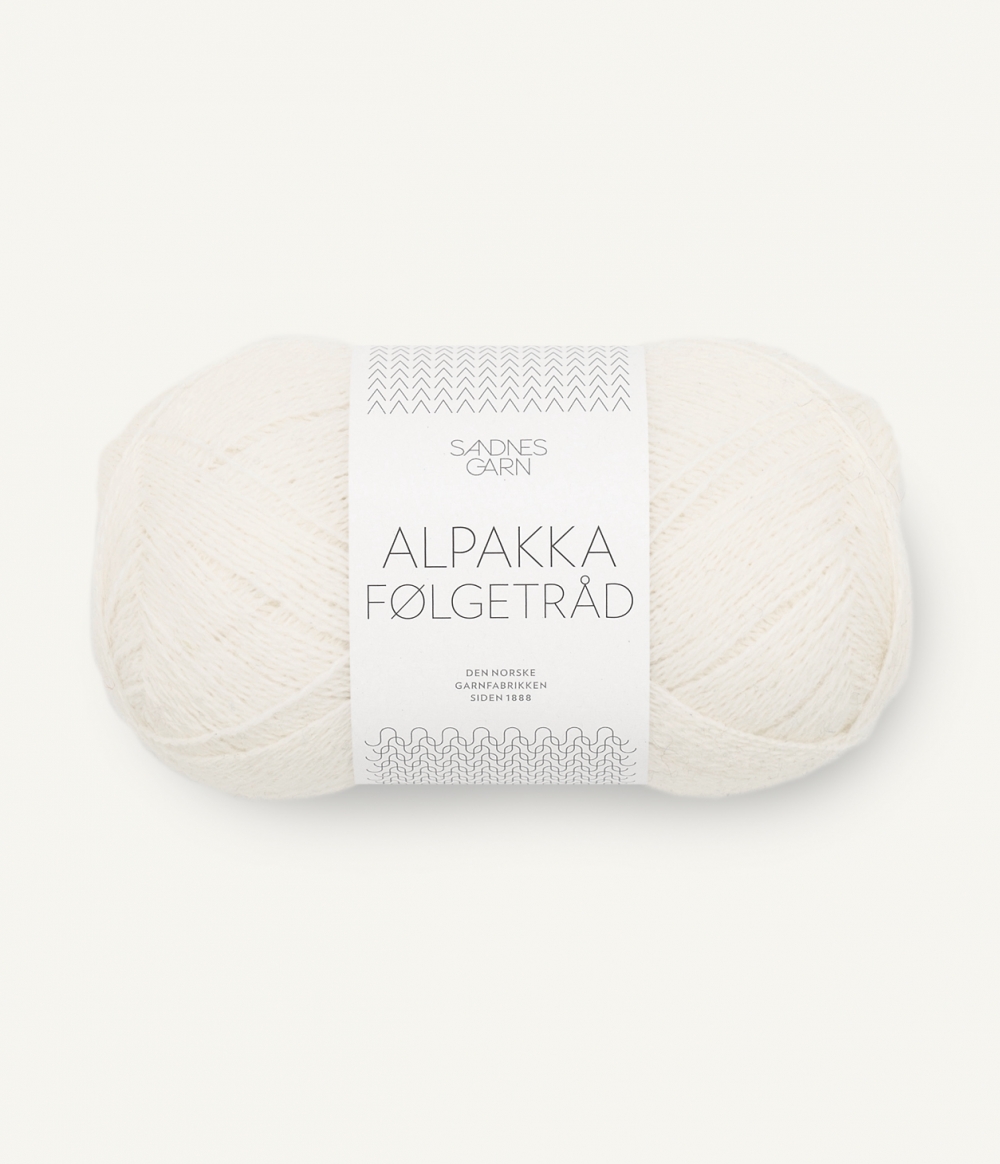 ALPAKKA FØLGETRÅD er et alternativ til TYNN SILK MOHAIR for de som ikke ønsker et fluffy uttrykk. Utvalget starter nå med 6 farger i en 2-tråds alpakka.