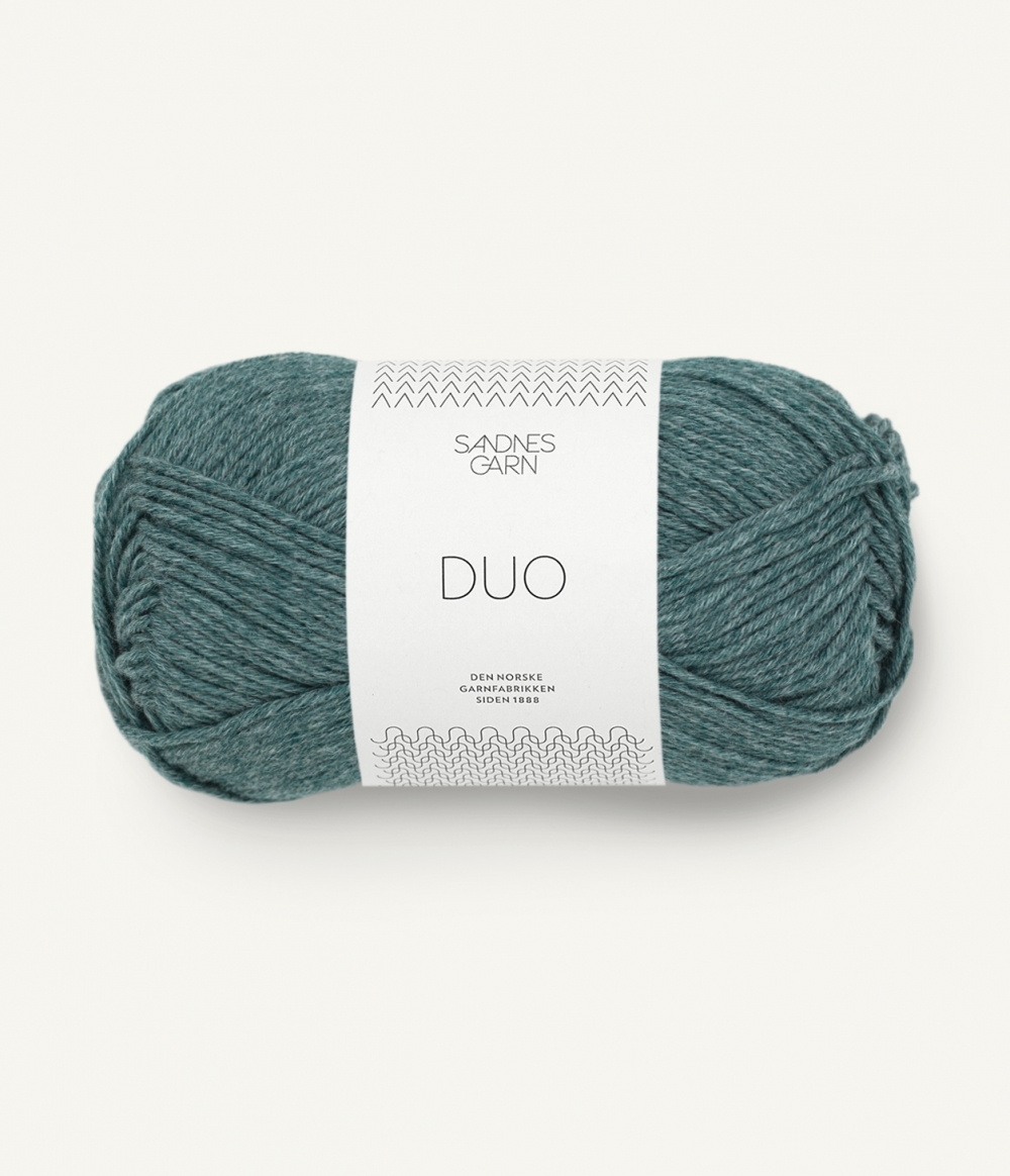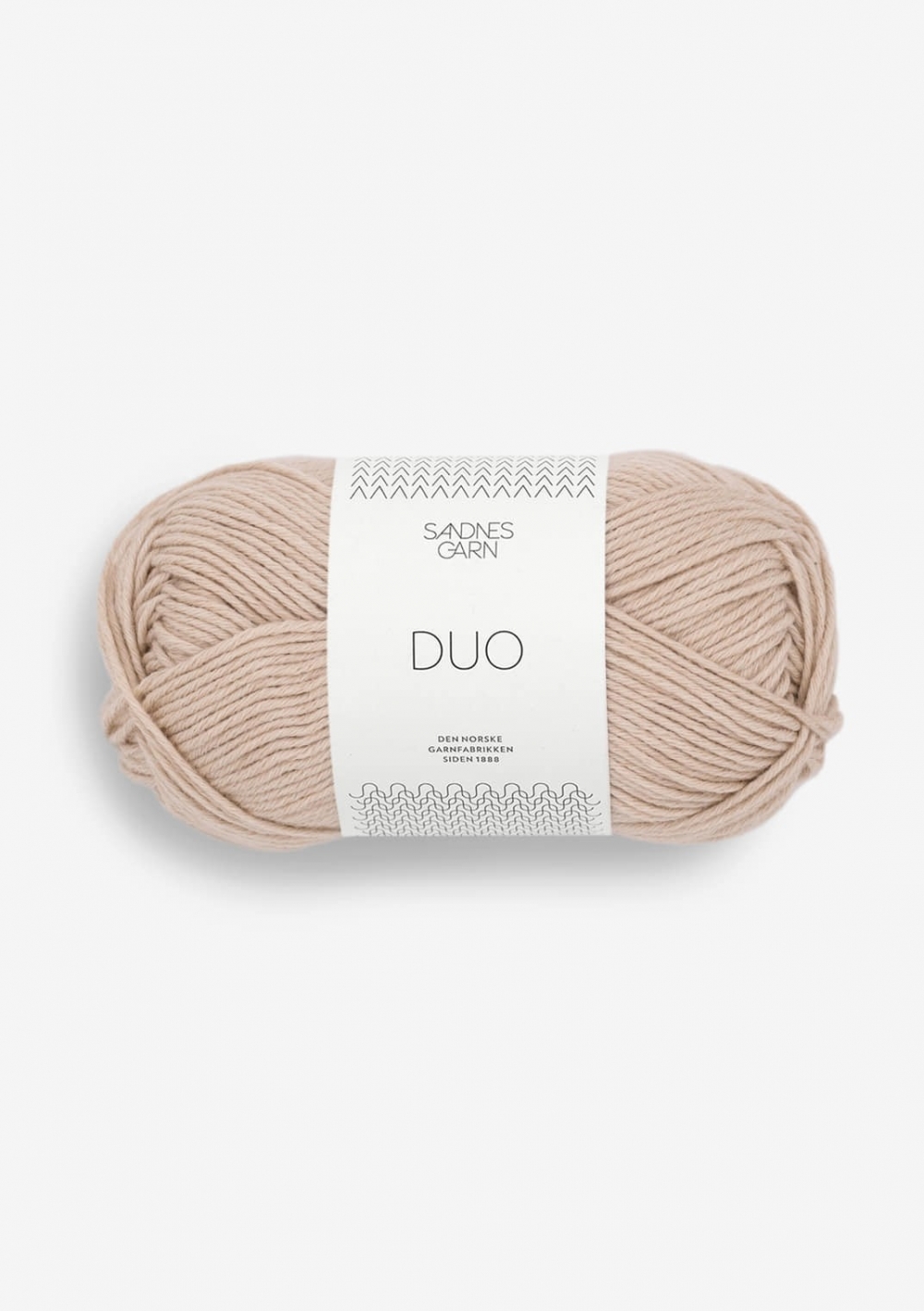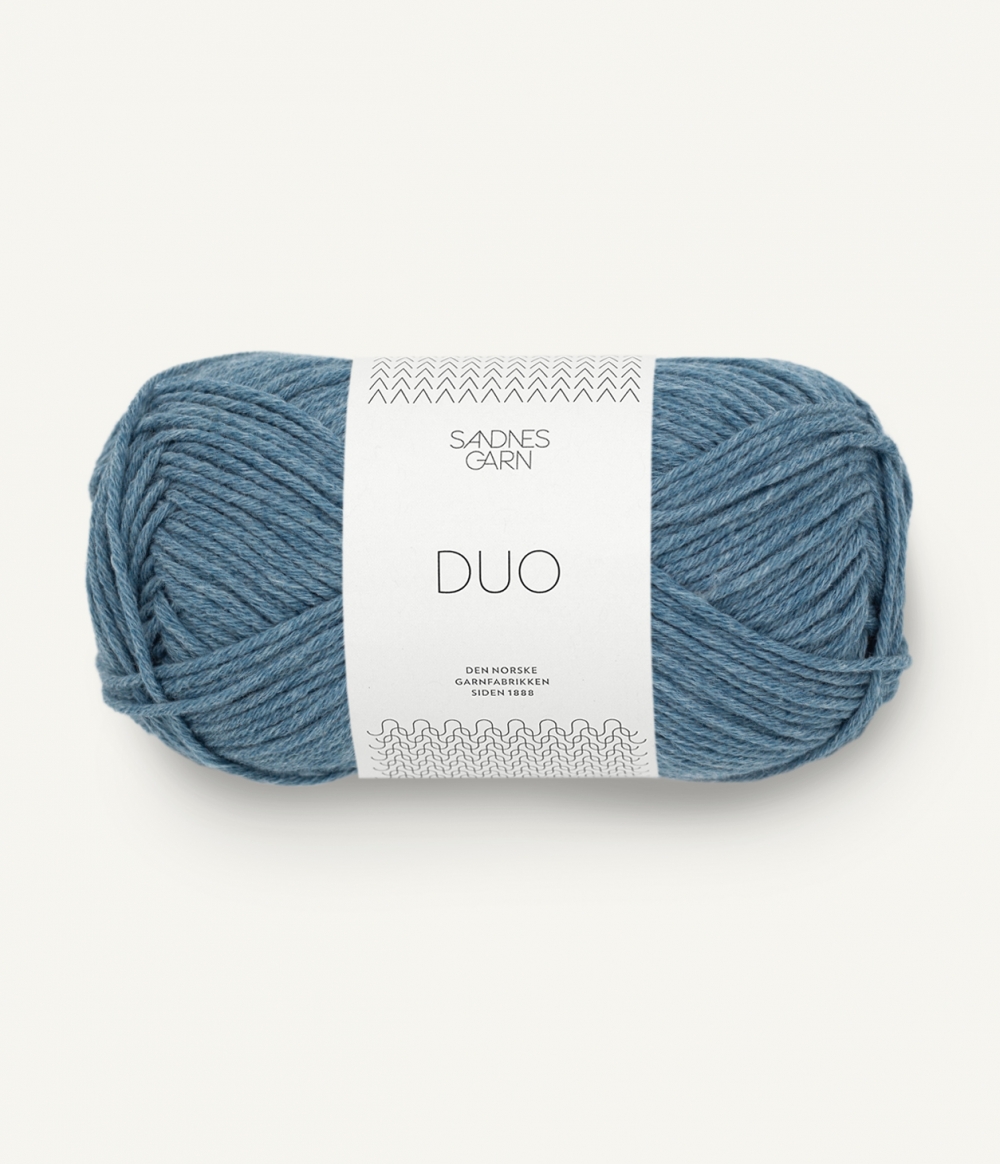 DUO inneholder 55 % merinoull og 45 % bomull.