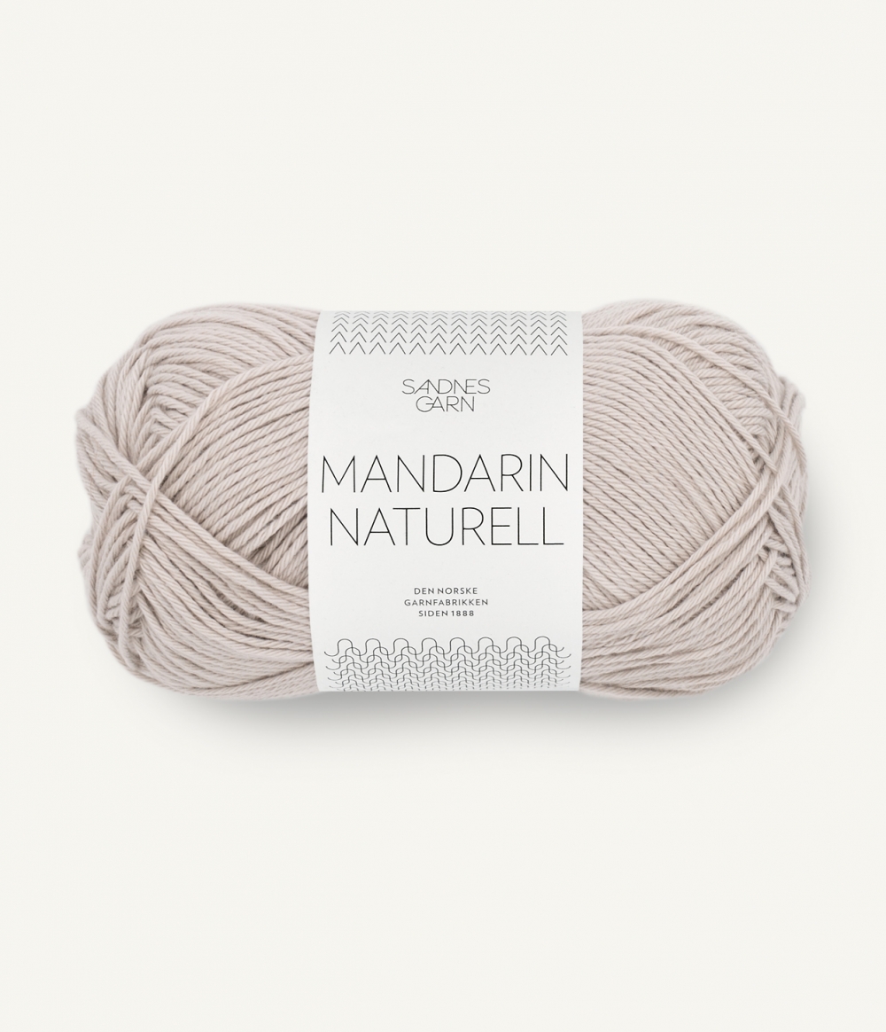 MANDARIN NATURELL inneholder 100 % bomull. Mykt og delikat bomullsgarn velegnet til baby, barn og voksne. Passer også utmerket til interiørprodukter som håndkle, kluter og grytekluter. Løpelengde pr. nøste (50 gr) = ca 135 meter. Plagget må vaskes separat. Råvaren til denne kvaliteten kommer fra India.