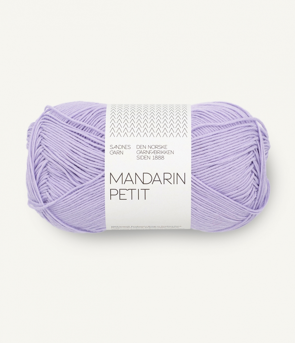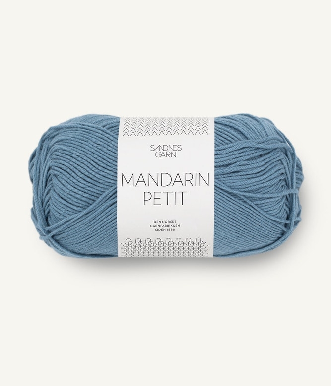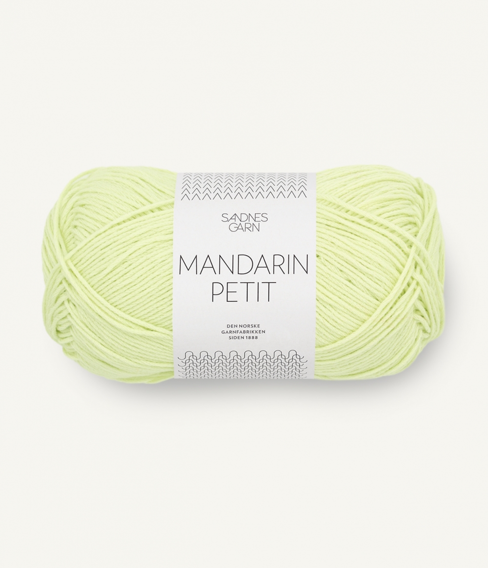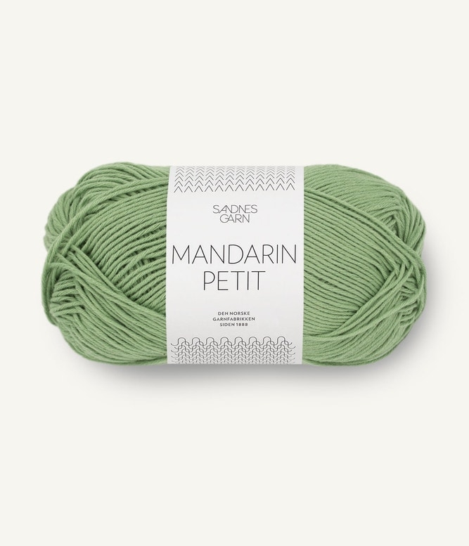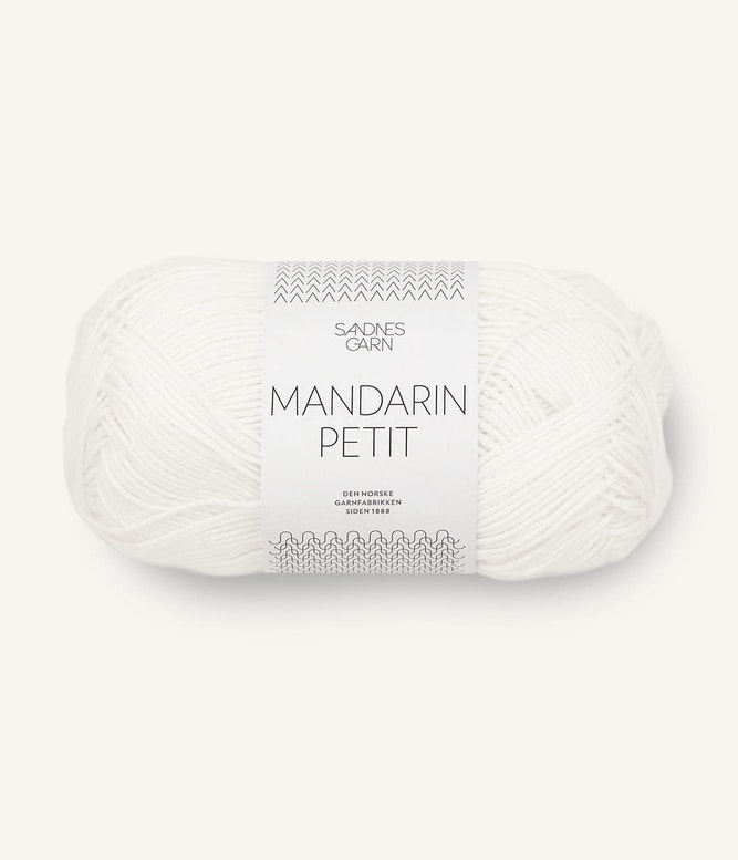 MANDARIN PETIT inneholder 100 % bomull. Mykt og delikat bomullsgarn velegnet til baby, barn og voksne. Passer utmerket til interiørprodukter som håndkle, kluter og grytekluter. Løpelengde pr. nøste (50 gr) = ca 180 meter. Plagget må vaskes separat. Råvaren til denne kvaliteten kommer fra India.
