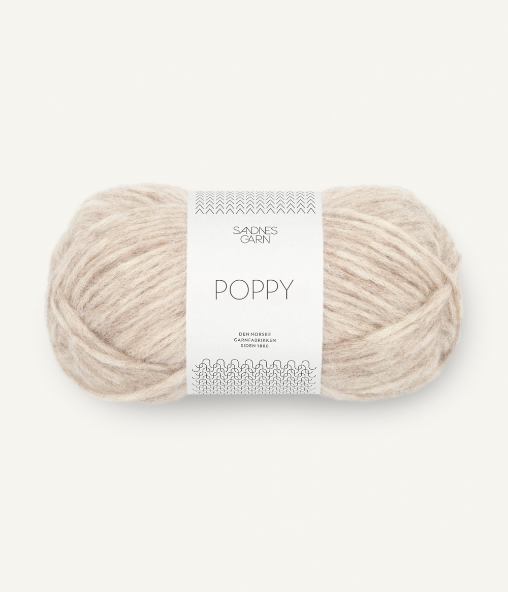 POPPY består av alpakkafiber som sammen med ull blir blåst inn i en bomullsstrømpe. Dette gir et mykt, lett og luftig garn.