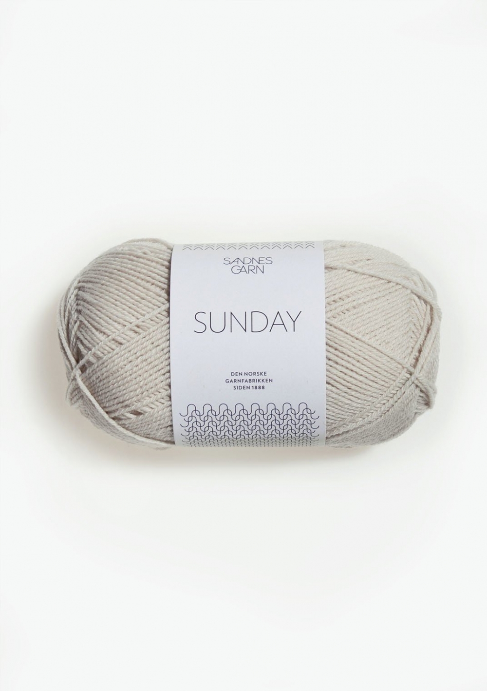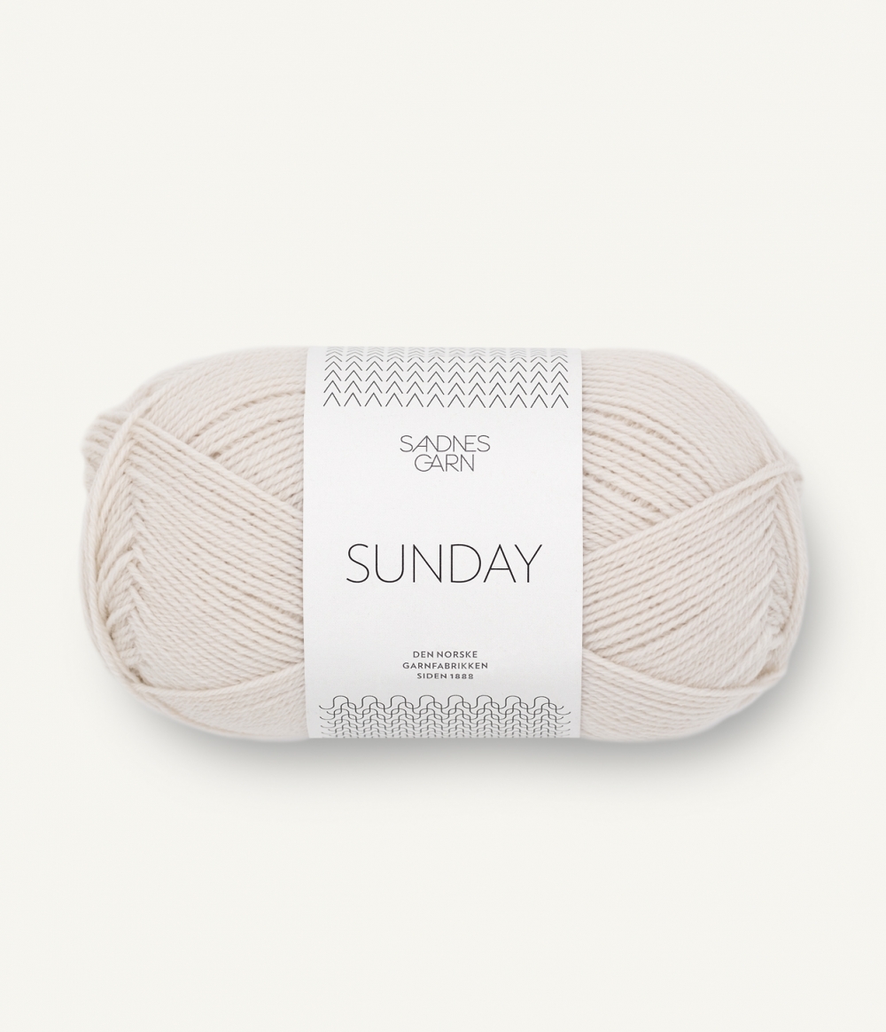 SUNDAY inneholder 100% merinoull og er det perfekte basisgarn: et tynt ikke-superwash behandlet merinoull, som kan strikkes med enkel og dobbel tråd. Eller strikkes sammen med Silk Mohair. Dette er et garn som passer til baby, barn og voksne.