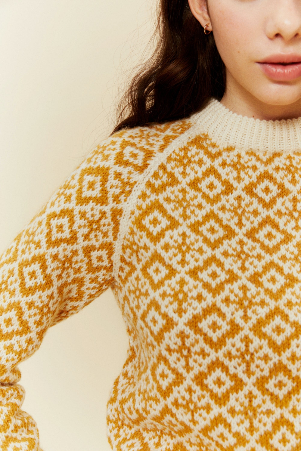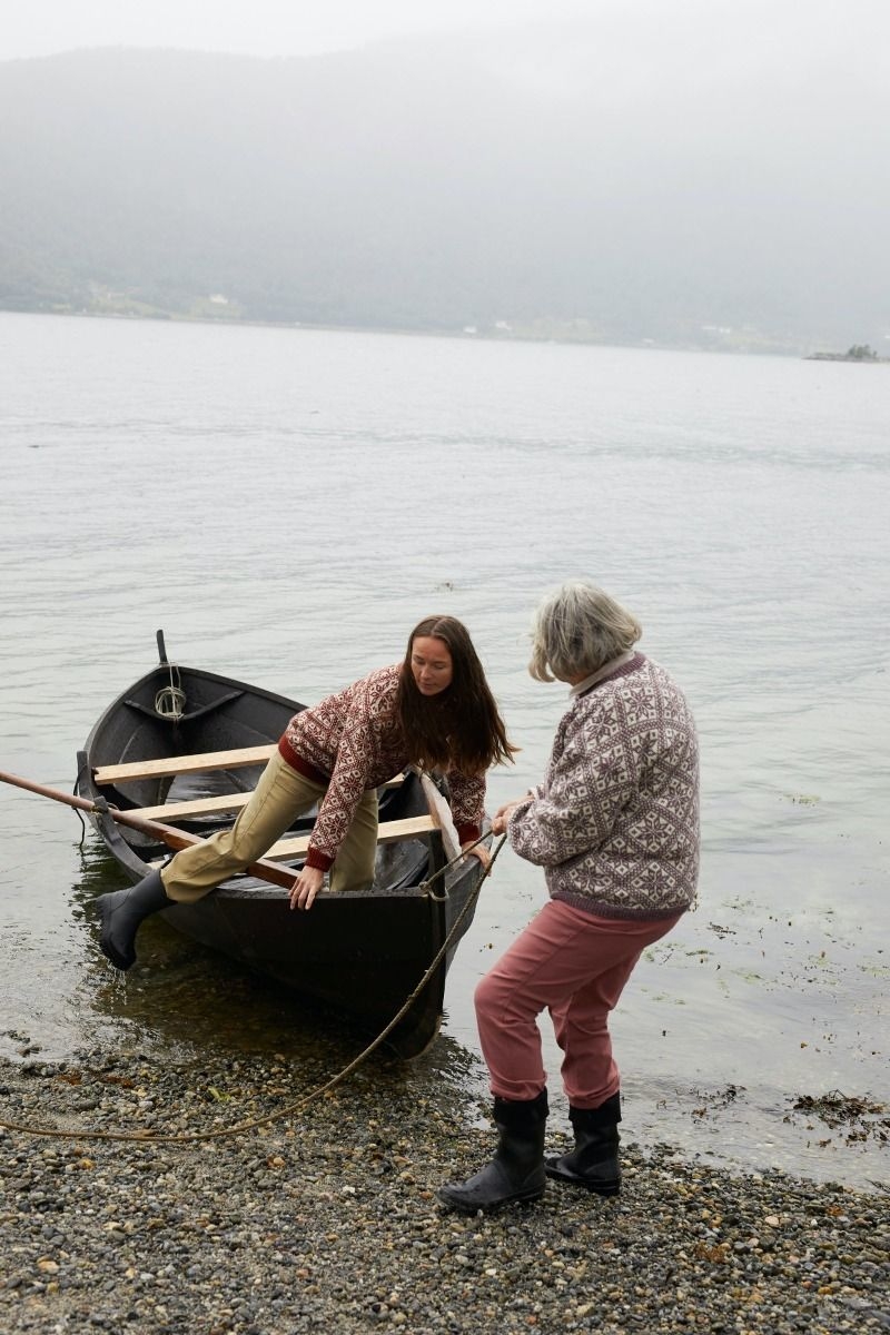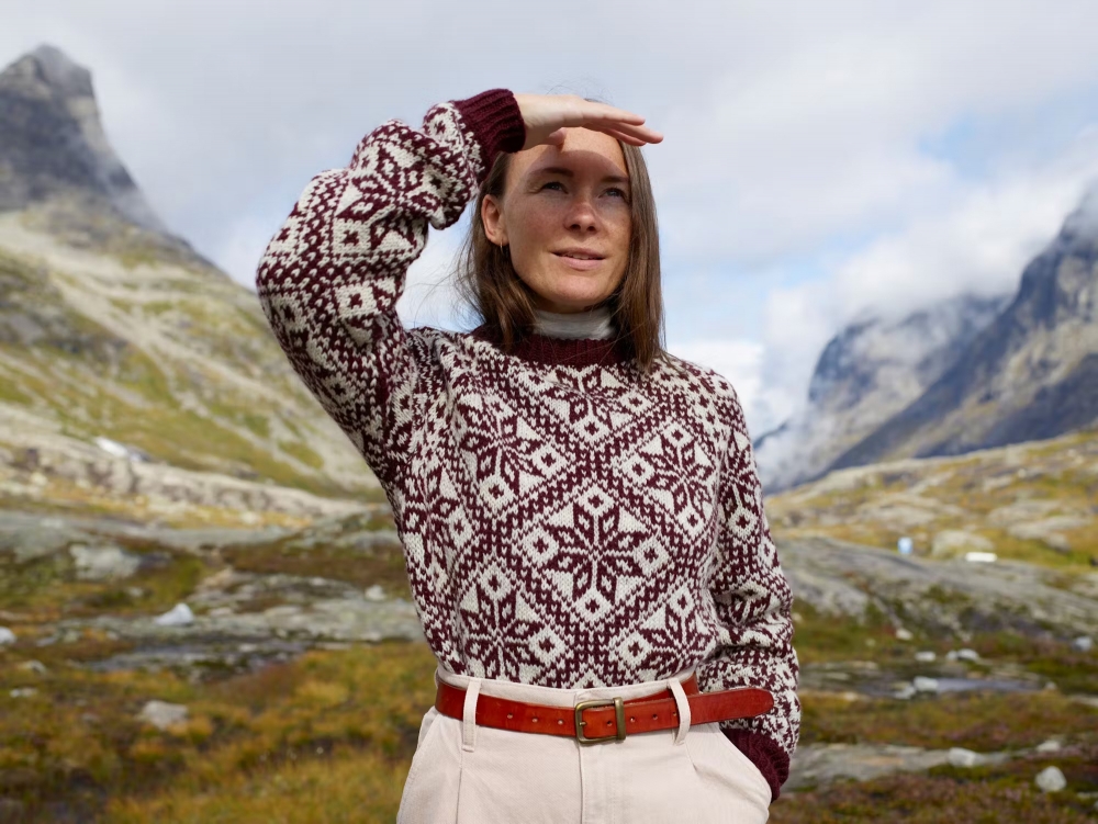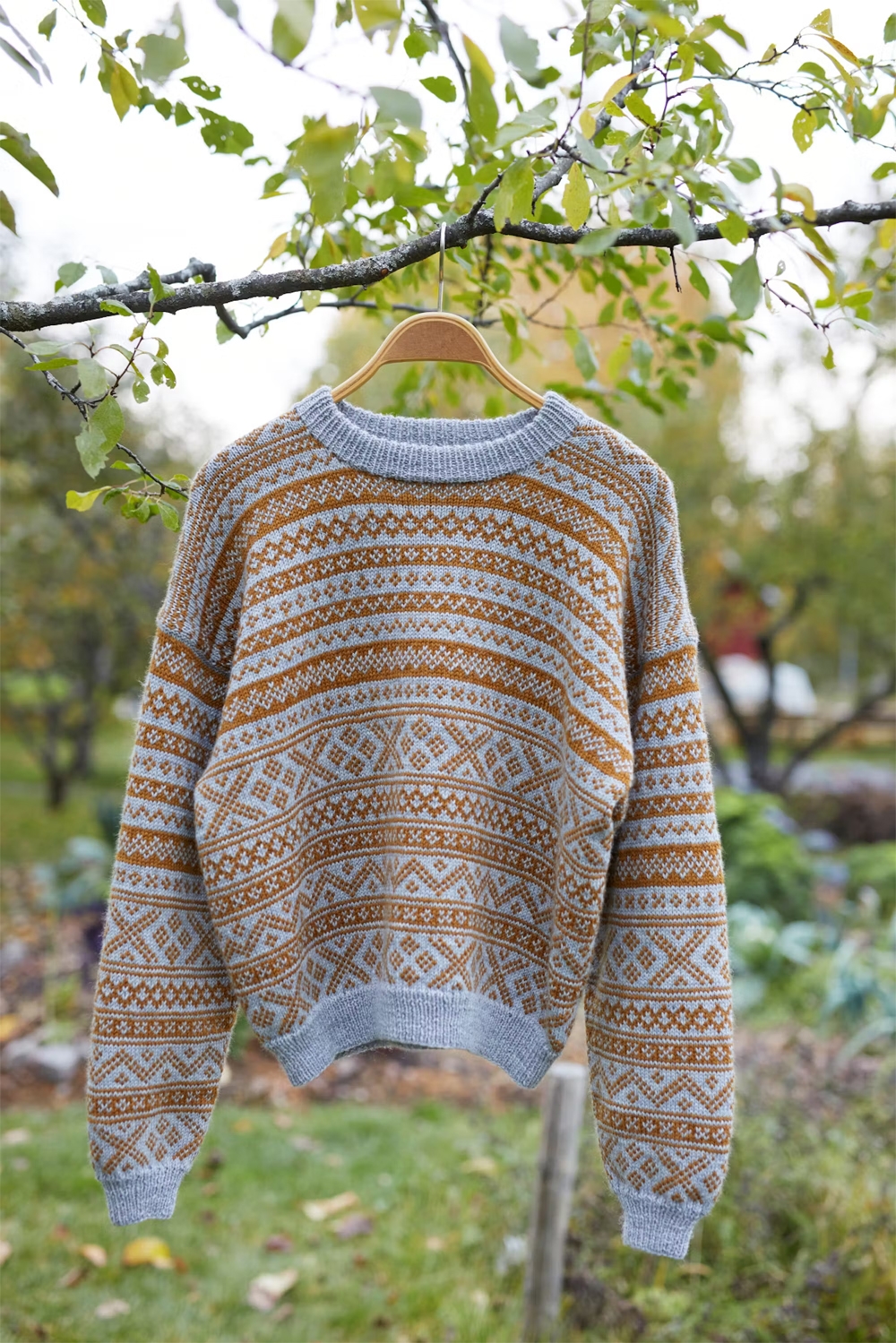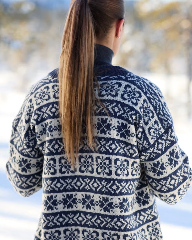 Det tradisjonsrike Setesdalsmønsteret er en klassiker som følger oss år etter år. Denne versjonen har raglanfelling og strikkes nedenfra og opp.