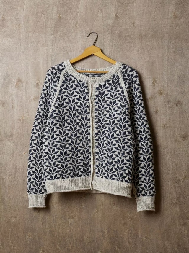 Garnpakke på Bladjakke til dame. Inkl. garn og mønster. Denne er strikket i 3tr Strikkegarn fra Rauma Garn.