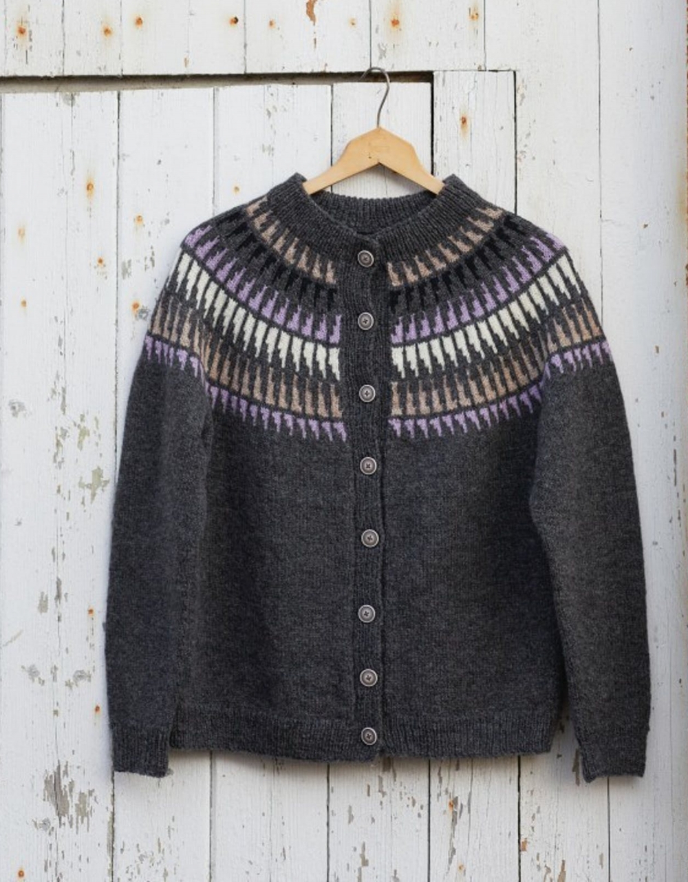 Fjelljakke i Finull dame Natur og lillamelert Strikkepakke