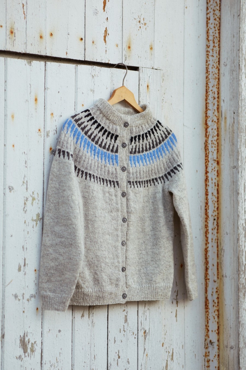 Islender går aldri av moten! Denne versjonen har raglanfelling med dekorativ bord i midten. Genseren er en kort modell, men kan gjerne strikkes lengre om du ønsker det. Strikkepakke med garn og oppskrift.