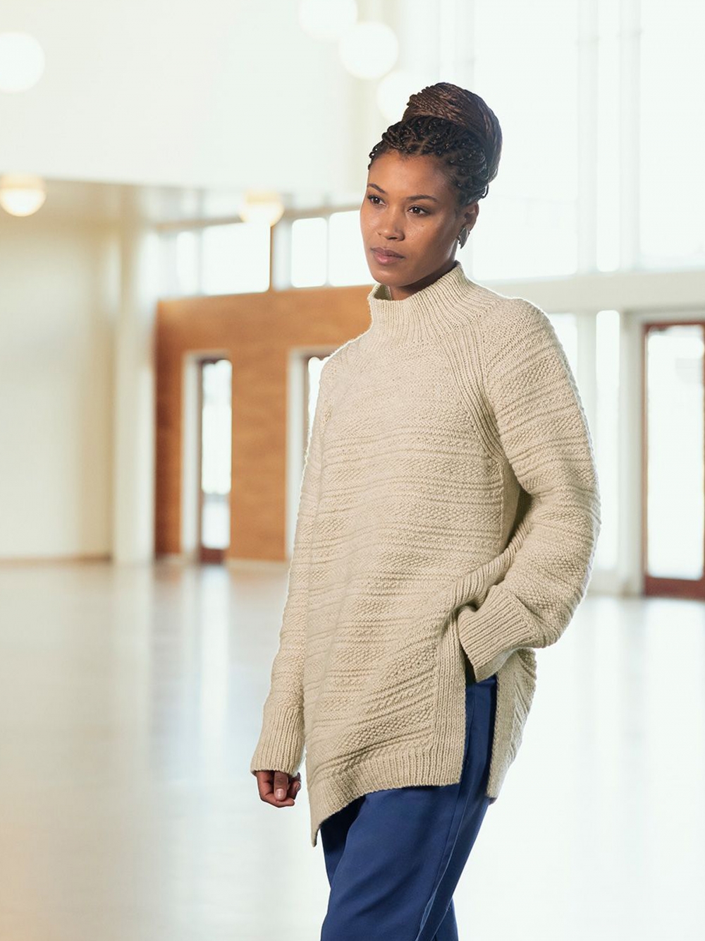 Strikkepakke med garn og oppskrift - genseren strikkes ovenfra og ned.