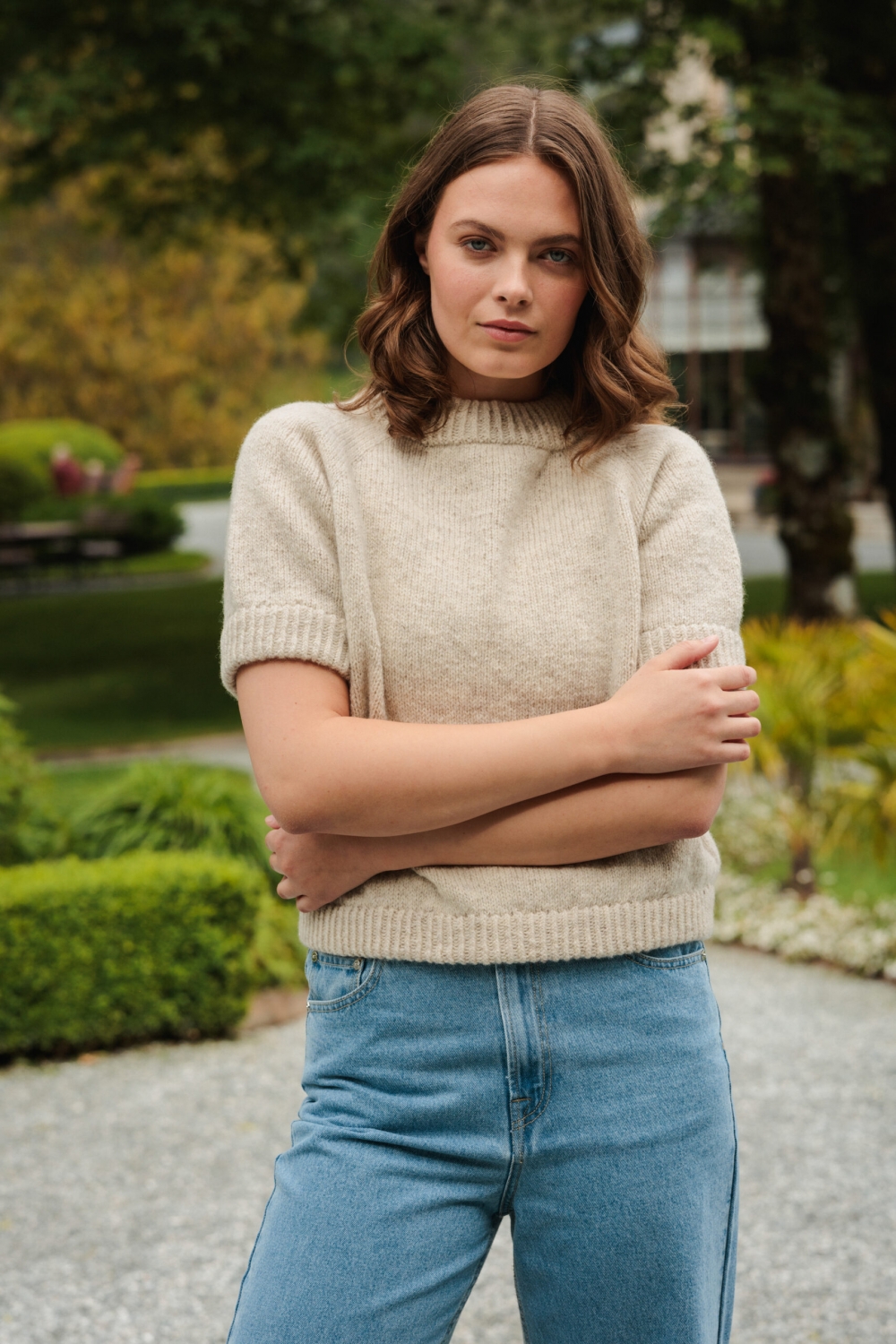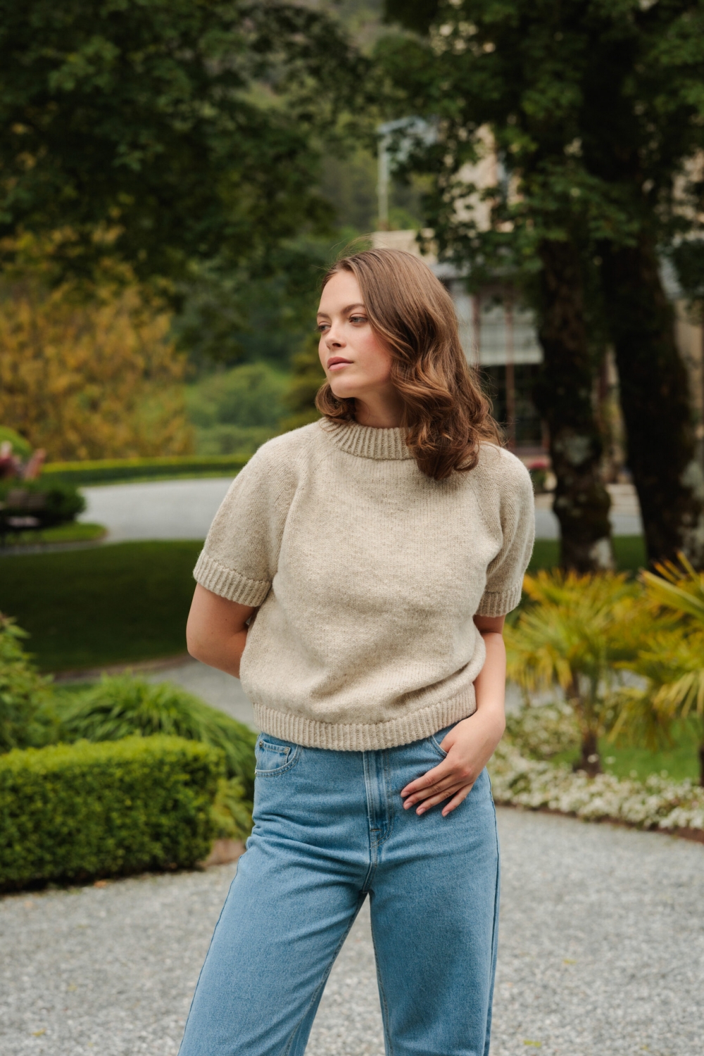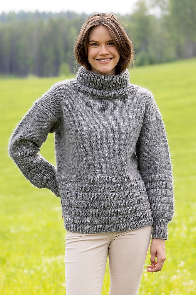 LeKnit Rosie Yoke Sweater Strikkepakke Peer Gynt og Tynn silk mohair