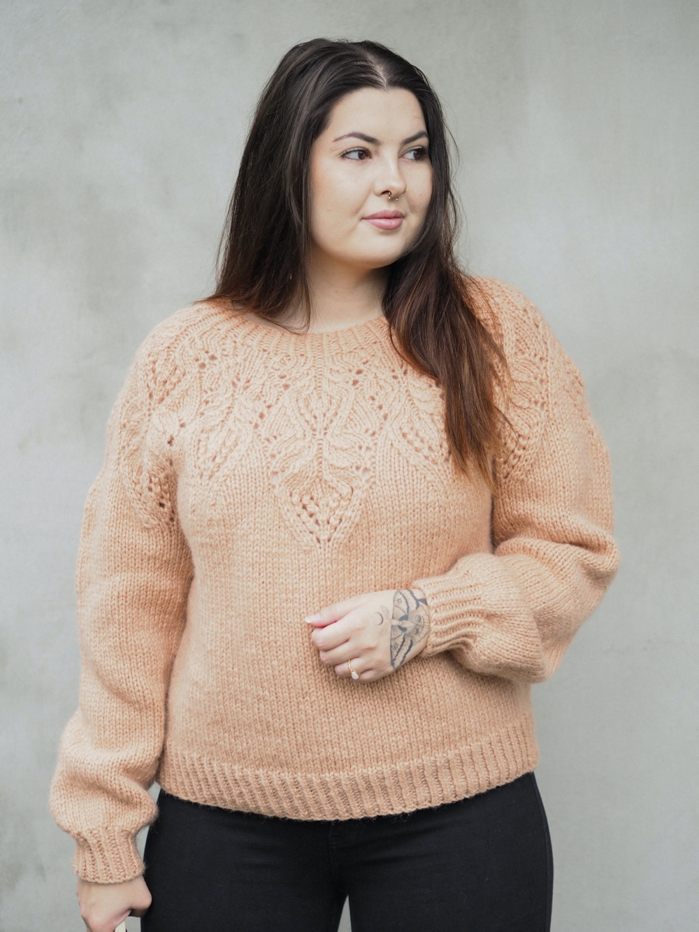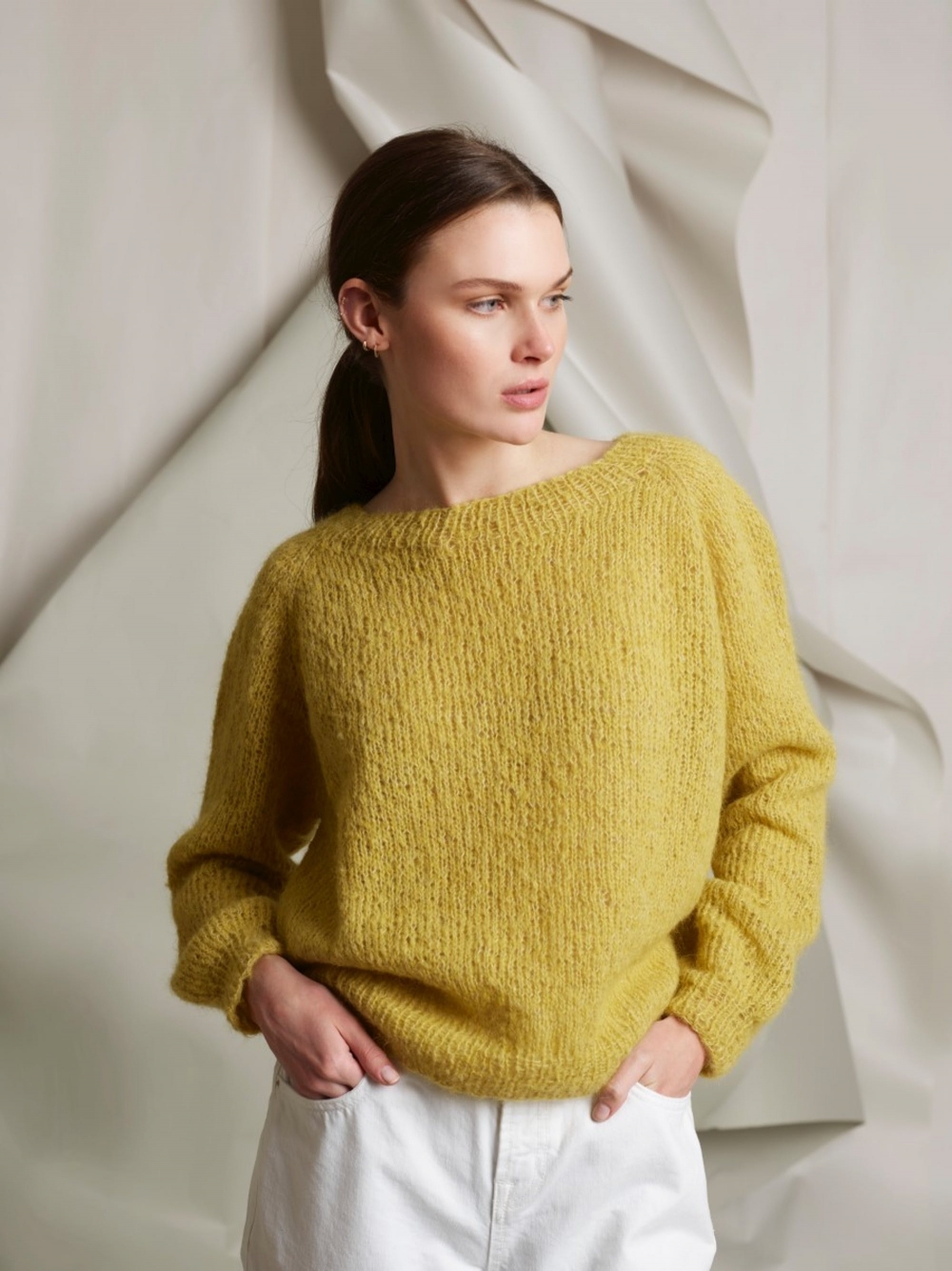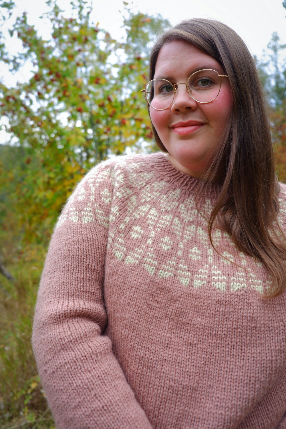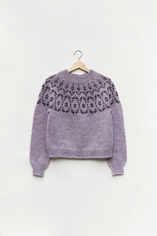 LeKnit Rosie Yoke Sweater Strikkepakke Peer Gynt og Tynn silk mohair