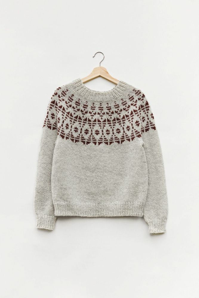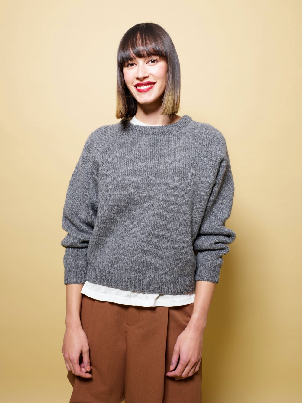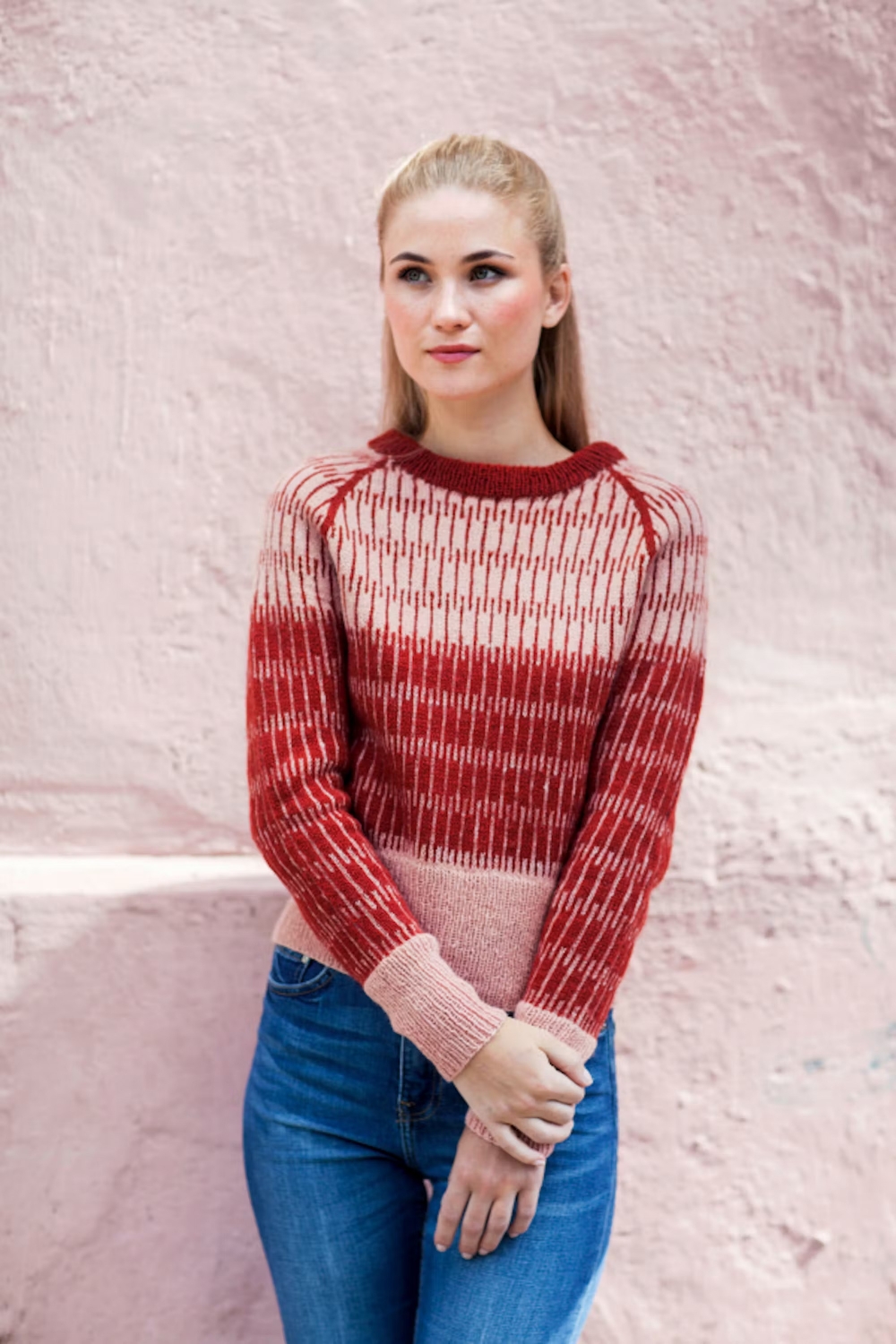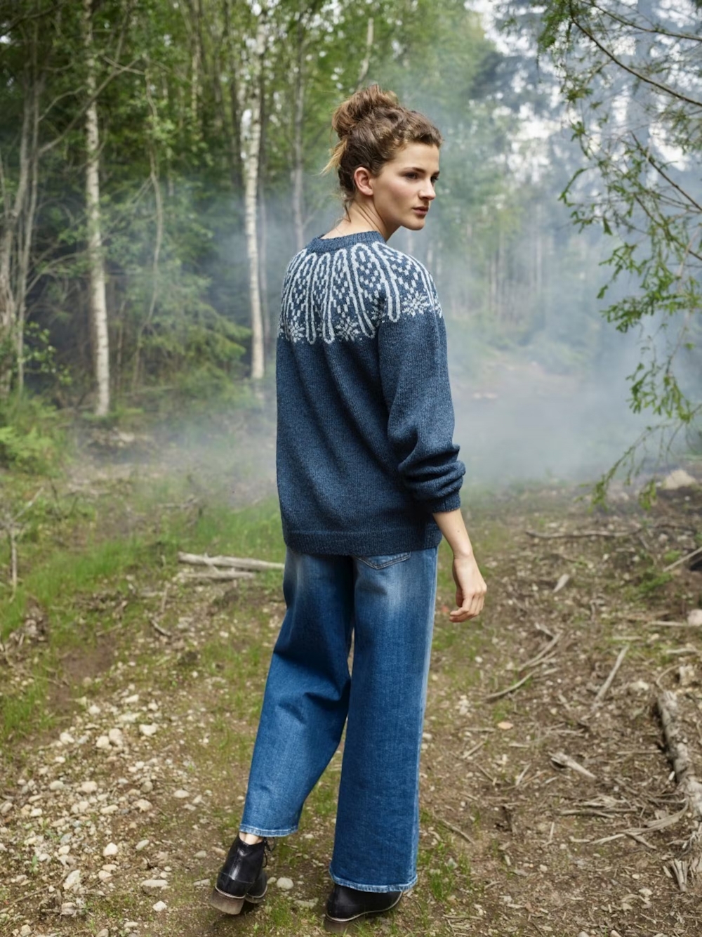 LeKnit Rosie Yoke Sweater Strikkepakke Peer Gynt og Tynn silk mohair