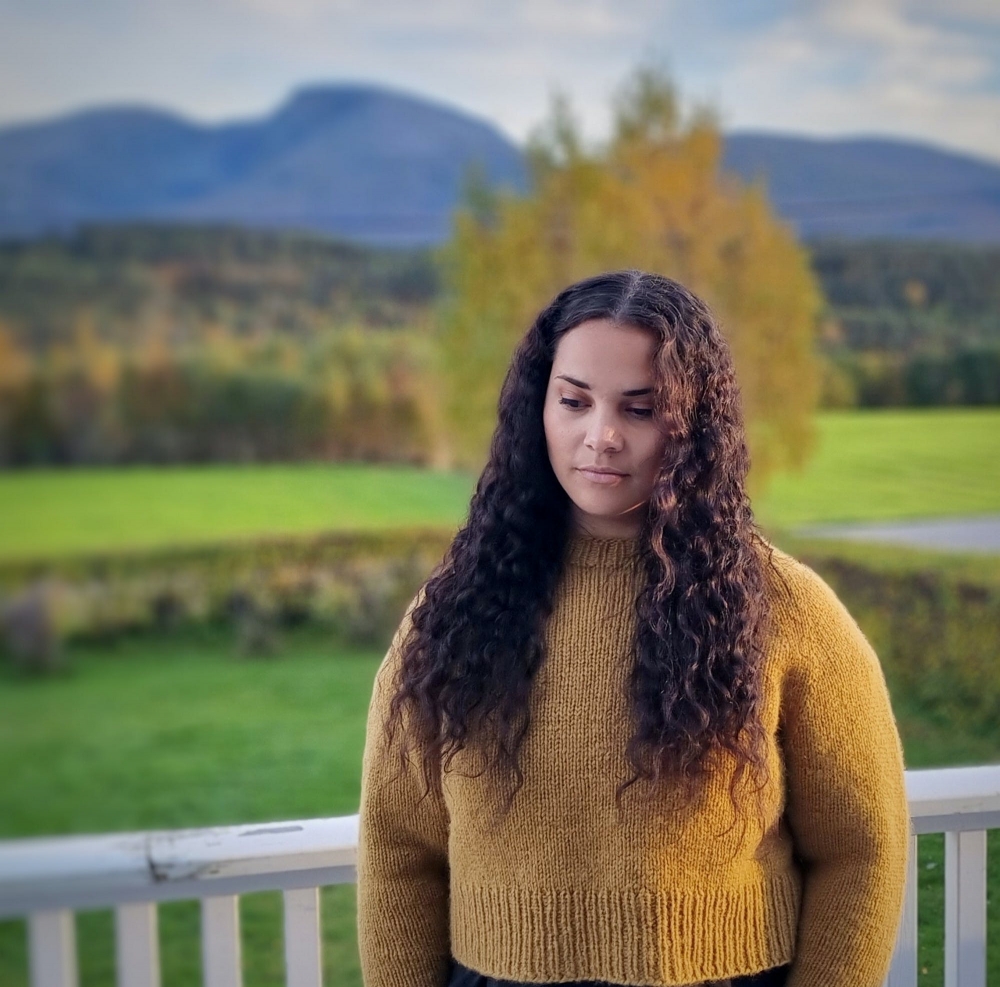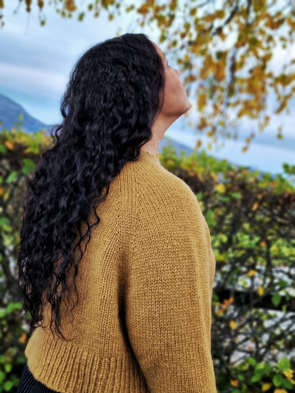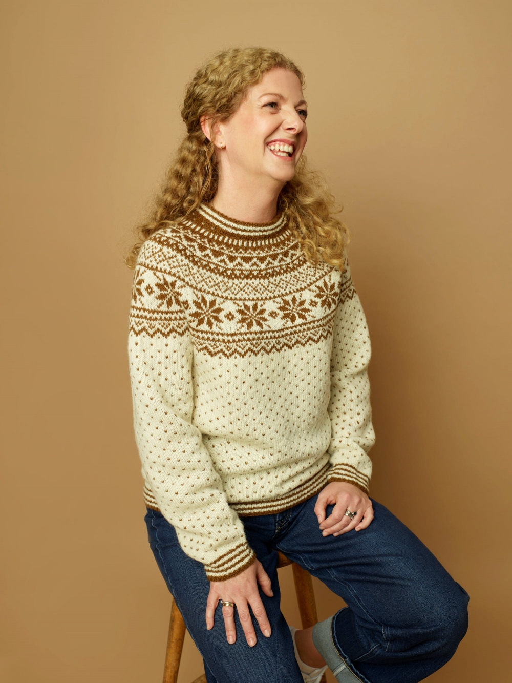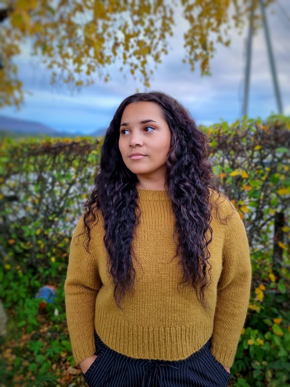 LeKnit Rosie Yoke Sweater Strikkepakke Peer Gynt og Tynn silk mohair