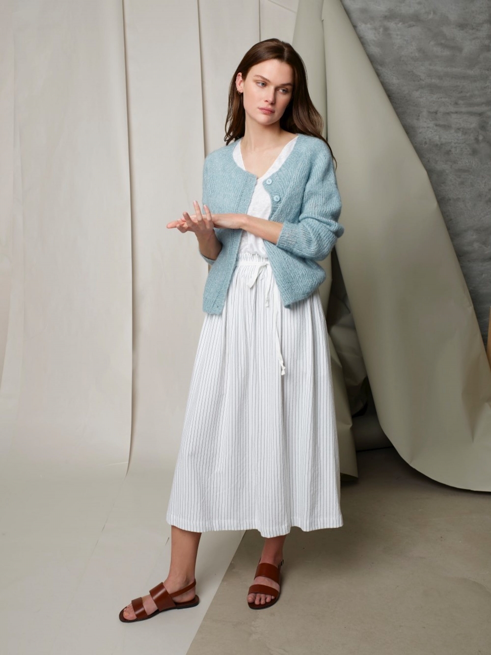 Vårgenser strikket i Tumi fra Rauma Garn. Strikkepakke med garn og oppskrift. Tumi er et mykt og deilig garn som er laget av 50% alpakka og 50% ull.