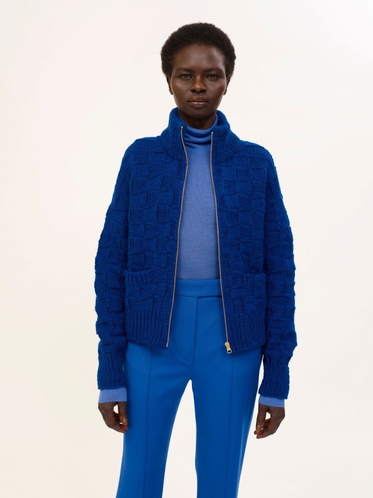 Rundfelt jakke strikket i Finull, 100% norsk ull. Strikkepakken inneholder garn og oppskrift.