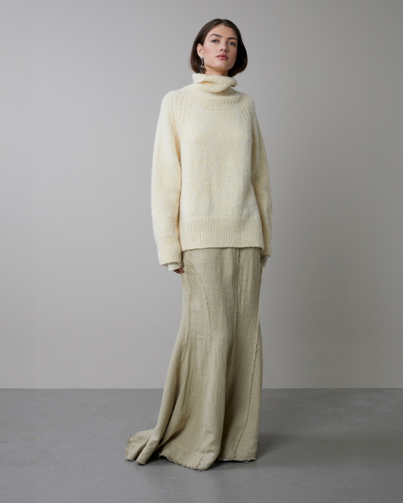 442 Nori raglangenser Kremgul Strikkepakke Finull og Alpakka lin