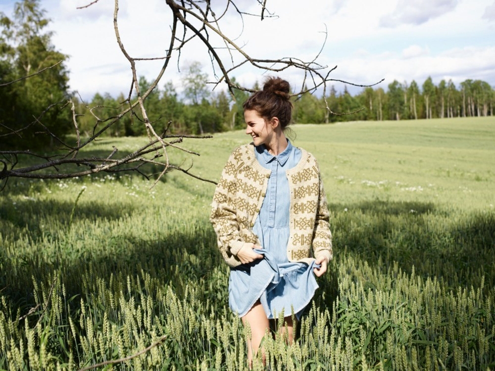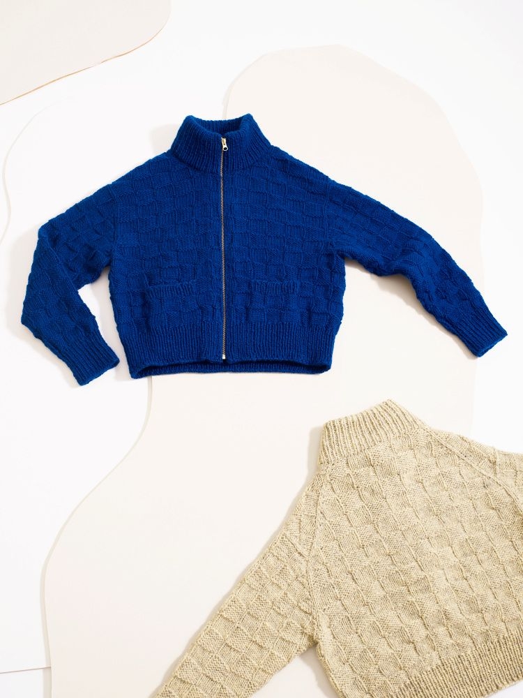 Rundfelt jakke strikket i Finull, 100% norsk ull. Strikkepakke med garn og oppskrift.