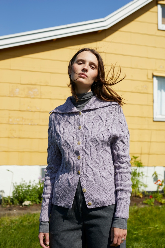 Fjelljakke i Finull dame Natur og lillamelert Strikkepakke