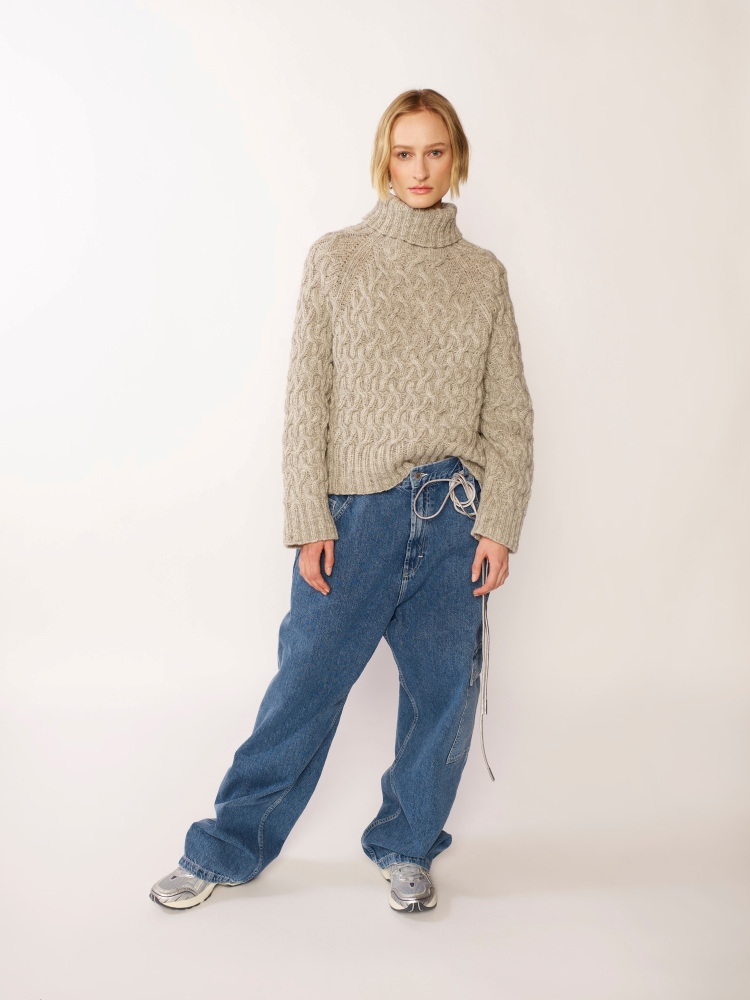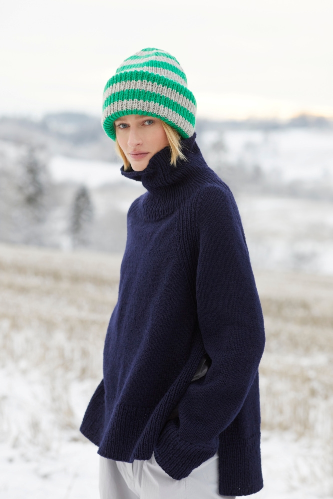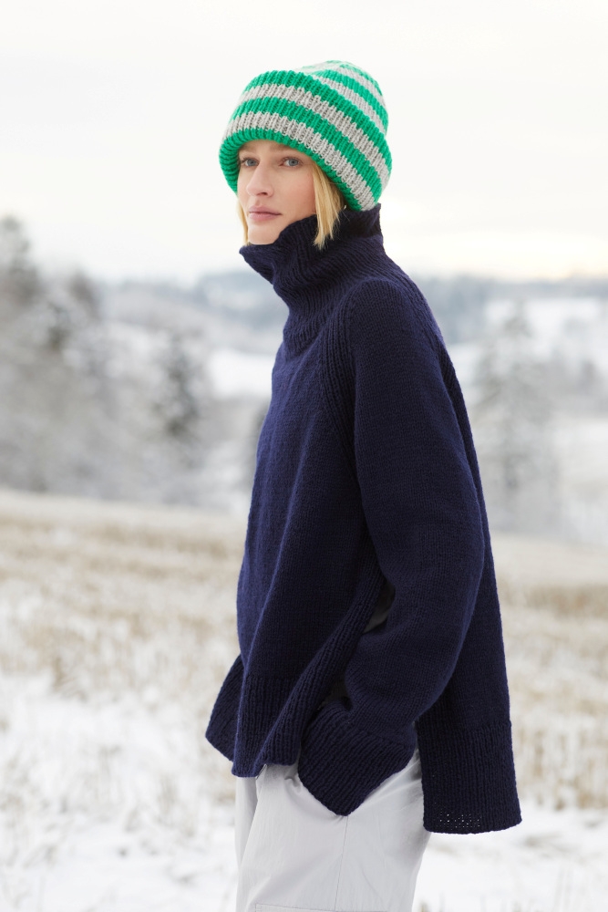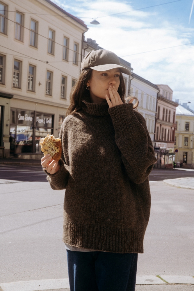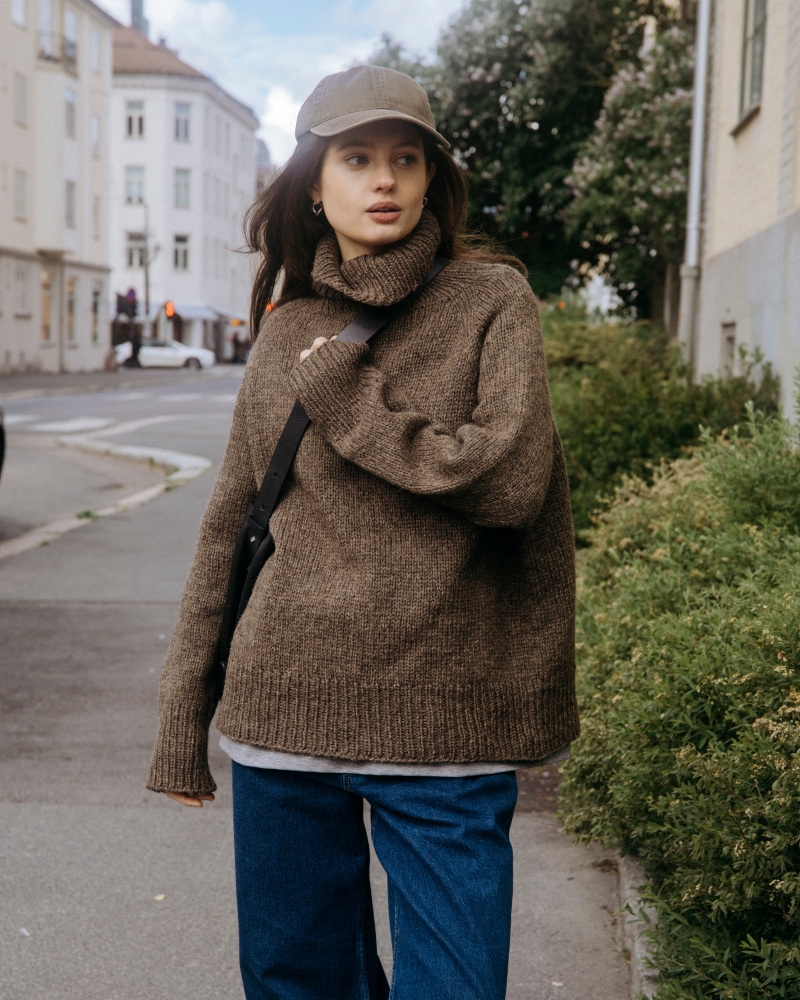 Genser strikket i patentstrikk i Tumi fra Rauma Garn. Tumi er et mykt og deilig garn som er laget av 50% alpakka og 50% ull. Strikkepakke med oppskrift og garn.