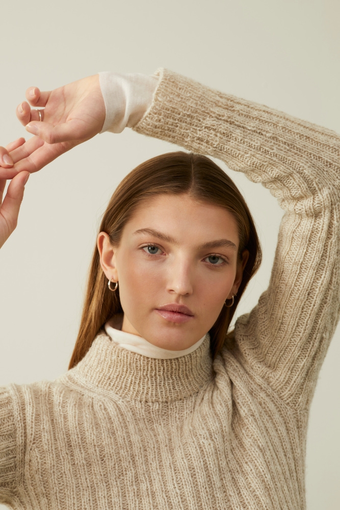 432-1 Bella genser Finull Sand Mørk kamelbrun