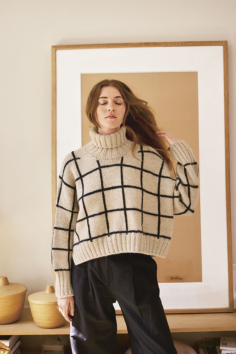 Strikkepakke med garn og oppskrift på LOU genser i Peer Gynt og Tynn Silk mohair. Ønsker du en annen farge, skriv det gjerne i kommentarfeltet eller kjøp hefte og garn hver for seg, se link under.