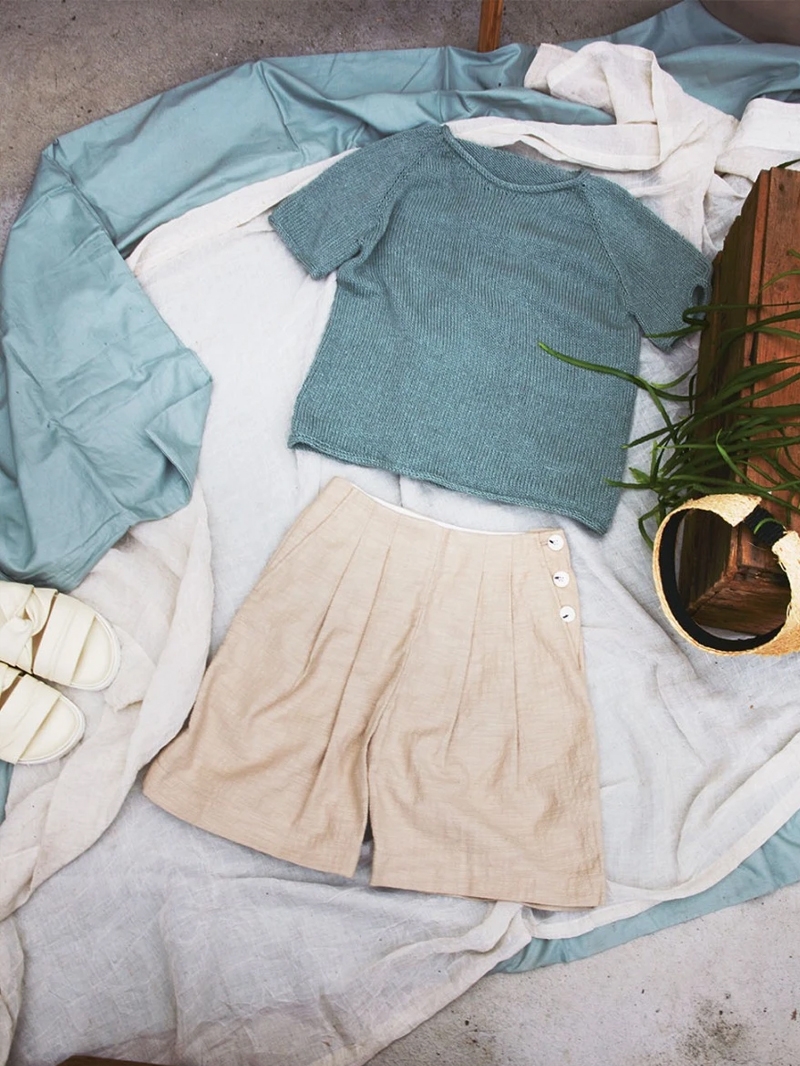 Tirils Sommer T-Skjorte Line Støvet grønn 8561 Strikkepakke