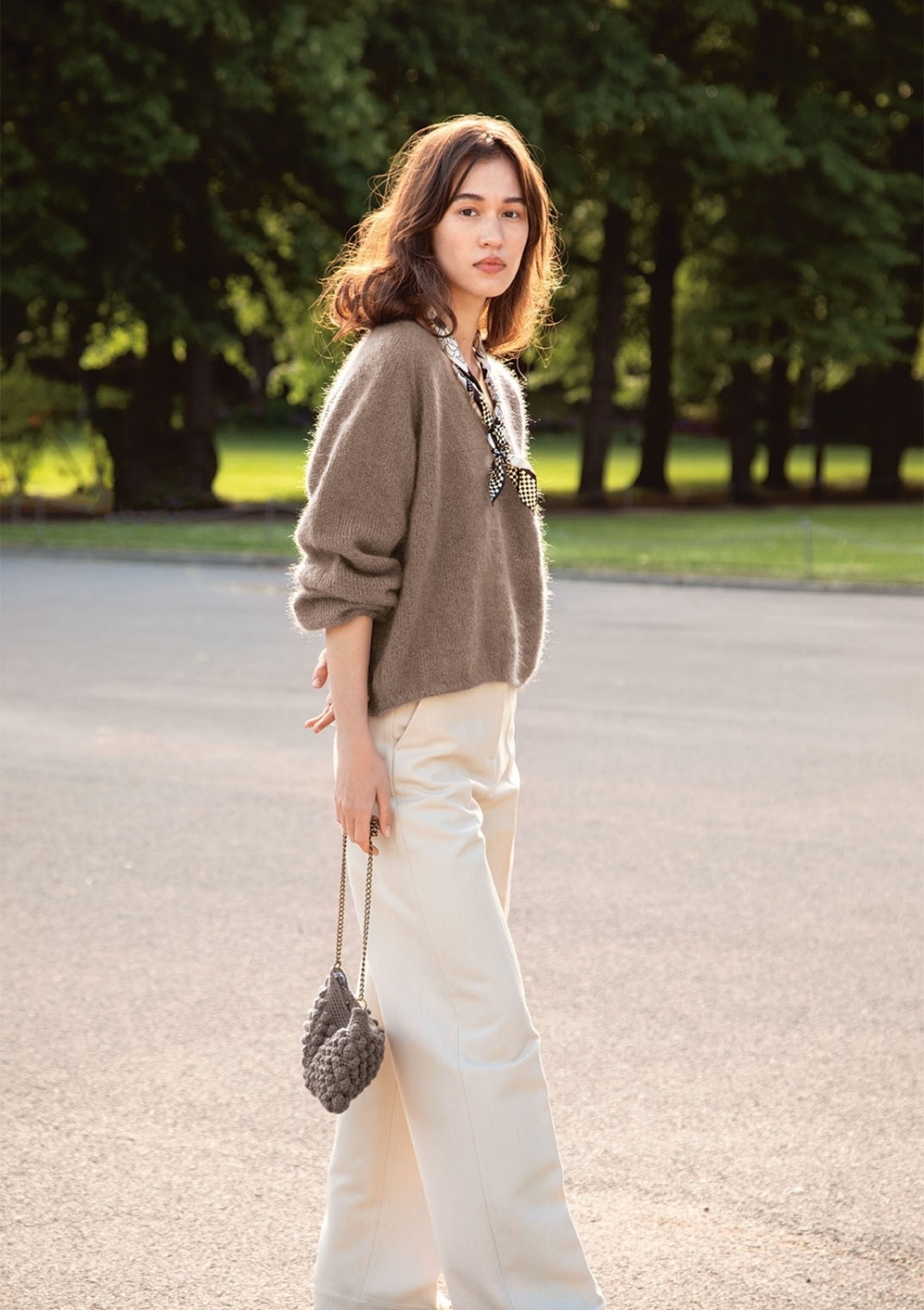 2209 1b Franky genser Eikenøtt Alpakka Silke og Tynn Silk Mohair (nedenfra og opp) Strikkepakke