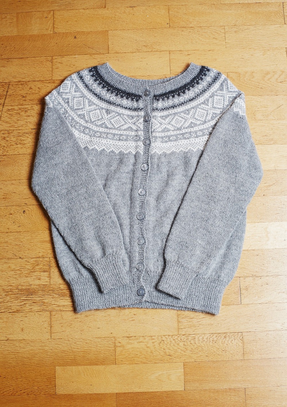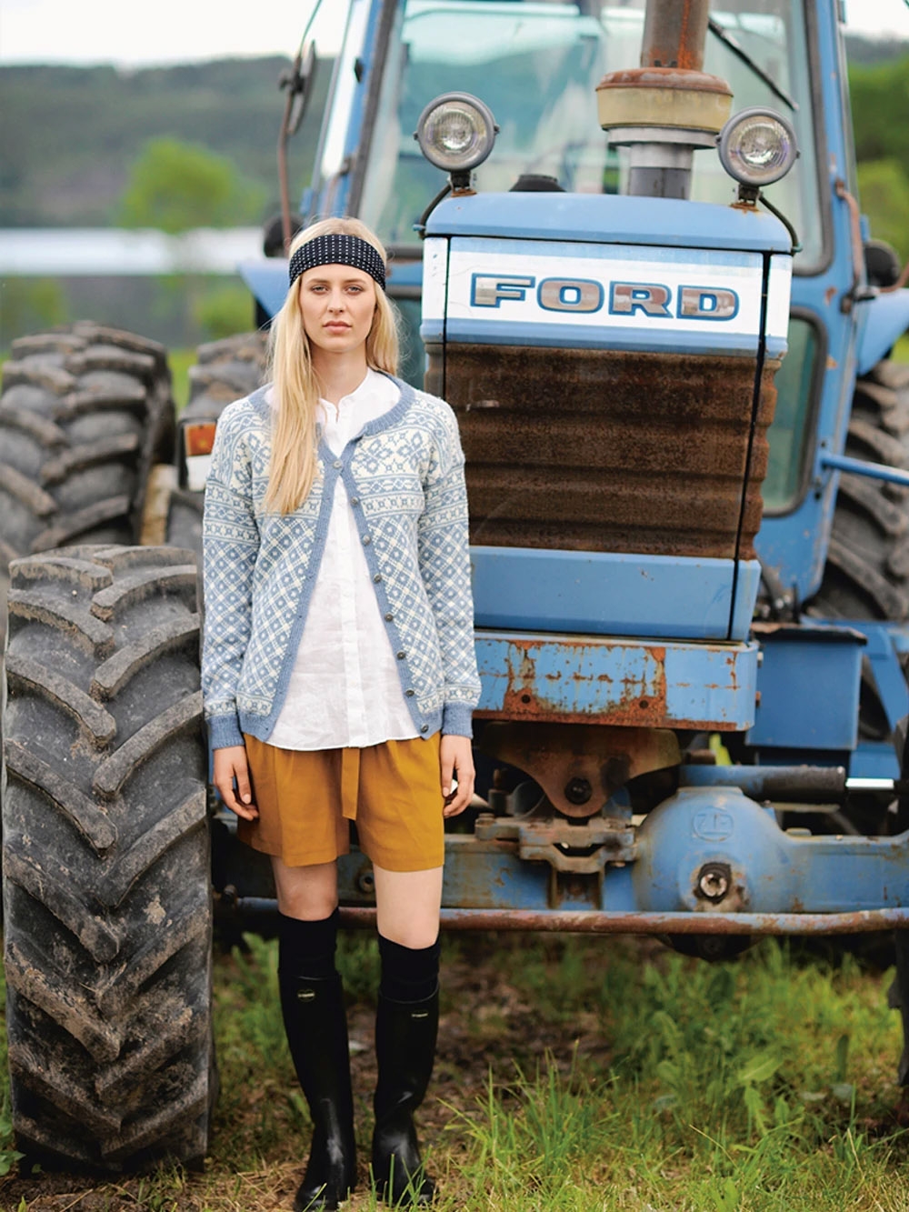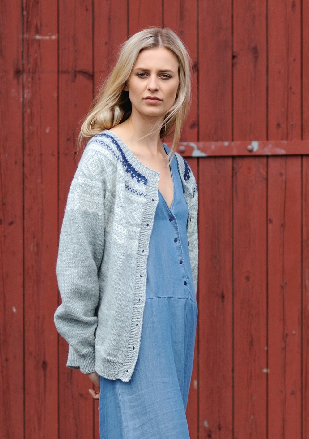 Damekofte med isydde ermer, strikket i Sisu. Strikkepakke med garn og oppskrift.