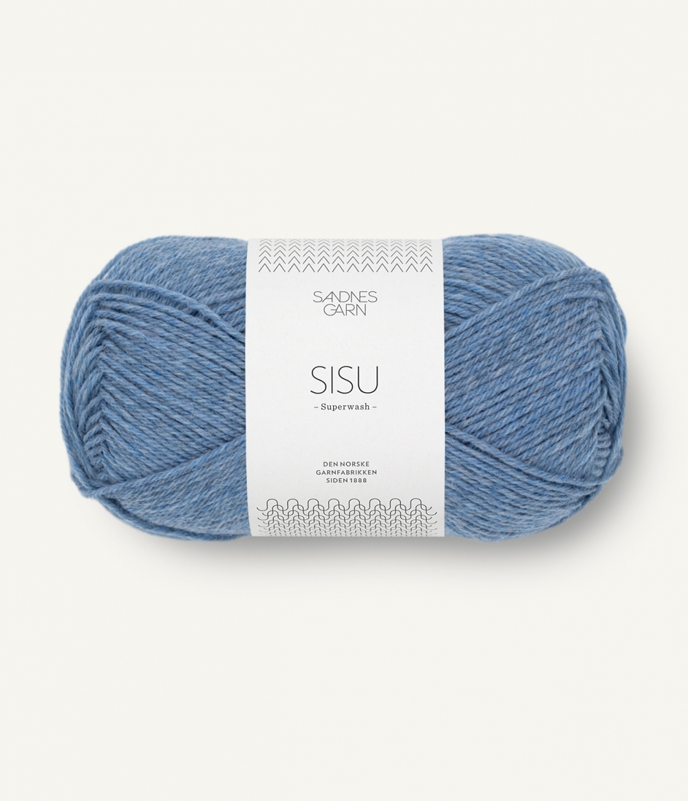 Strikket i Sisu. Dette er en strikkepakke med garn og mønster.