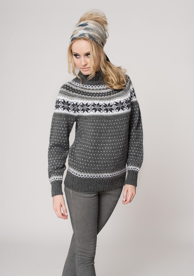 T35-15 Nancy genser dame Mini Alpakka Grå Strikkepakke