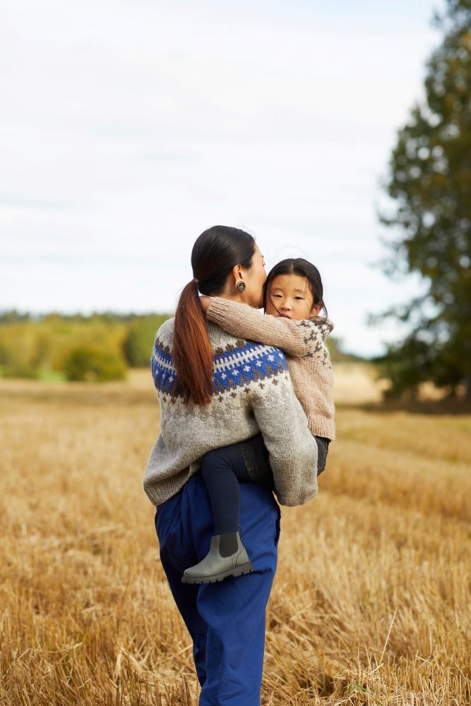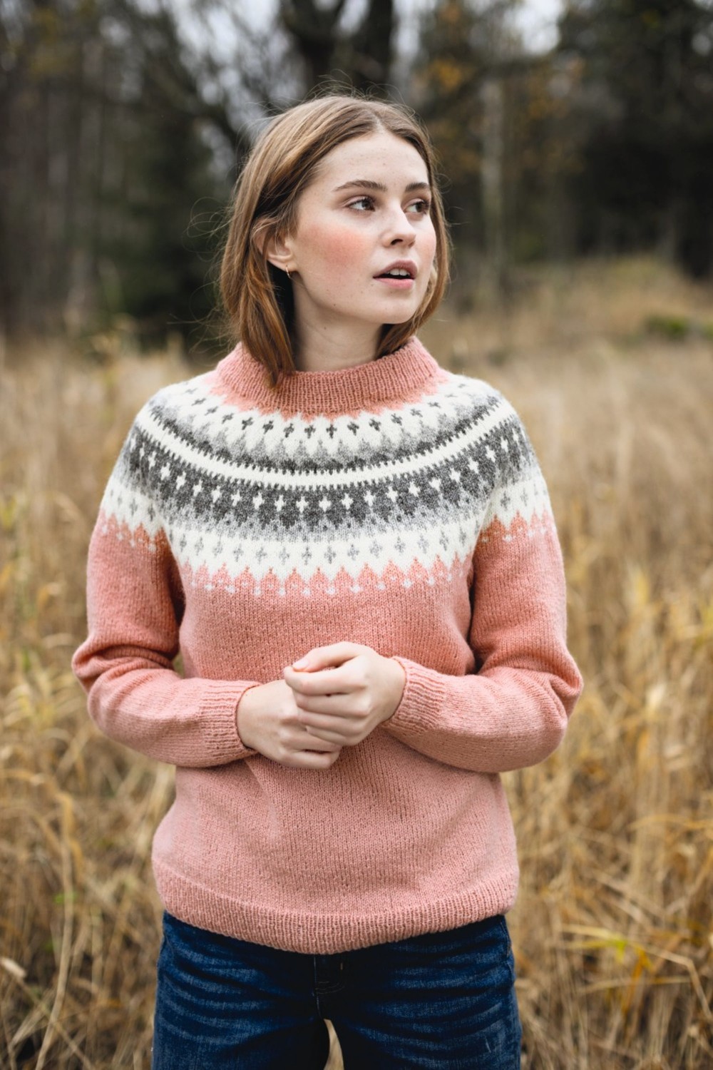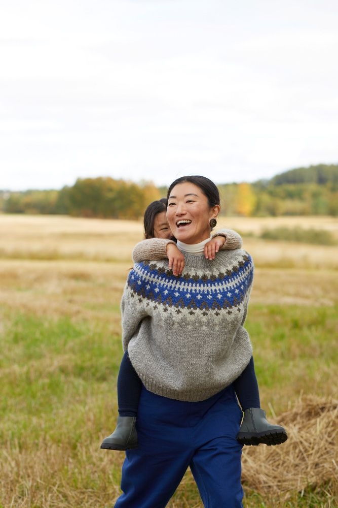 LeKnit Rosie Yoke Sweater Strikkepakke Peer Gynt og Tynn silk mohair