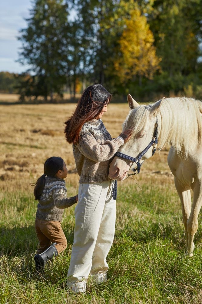 Dette er en strikkepakke strikket i Finullgarn fra Raumaull, dette gir lette luftige og bruksvennlige plagg med lang levetid. Strikkepakken er med garn og oppskrift.