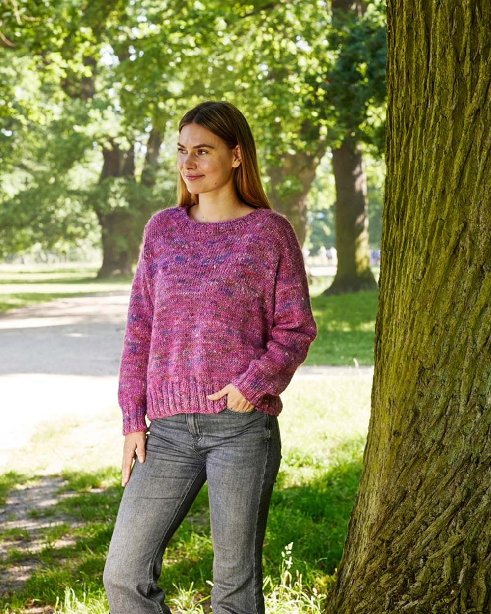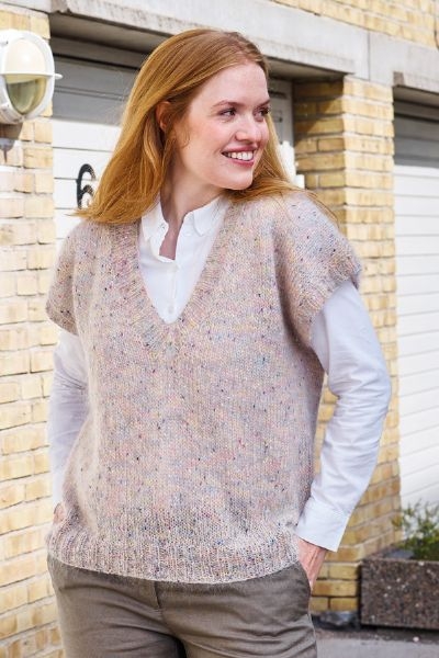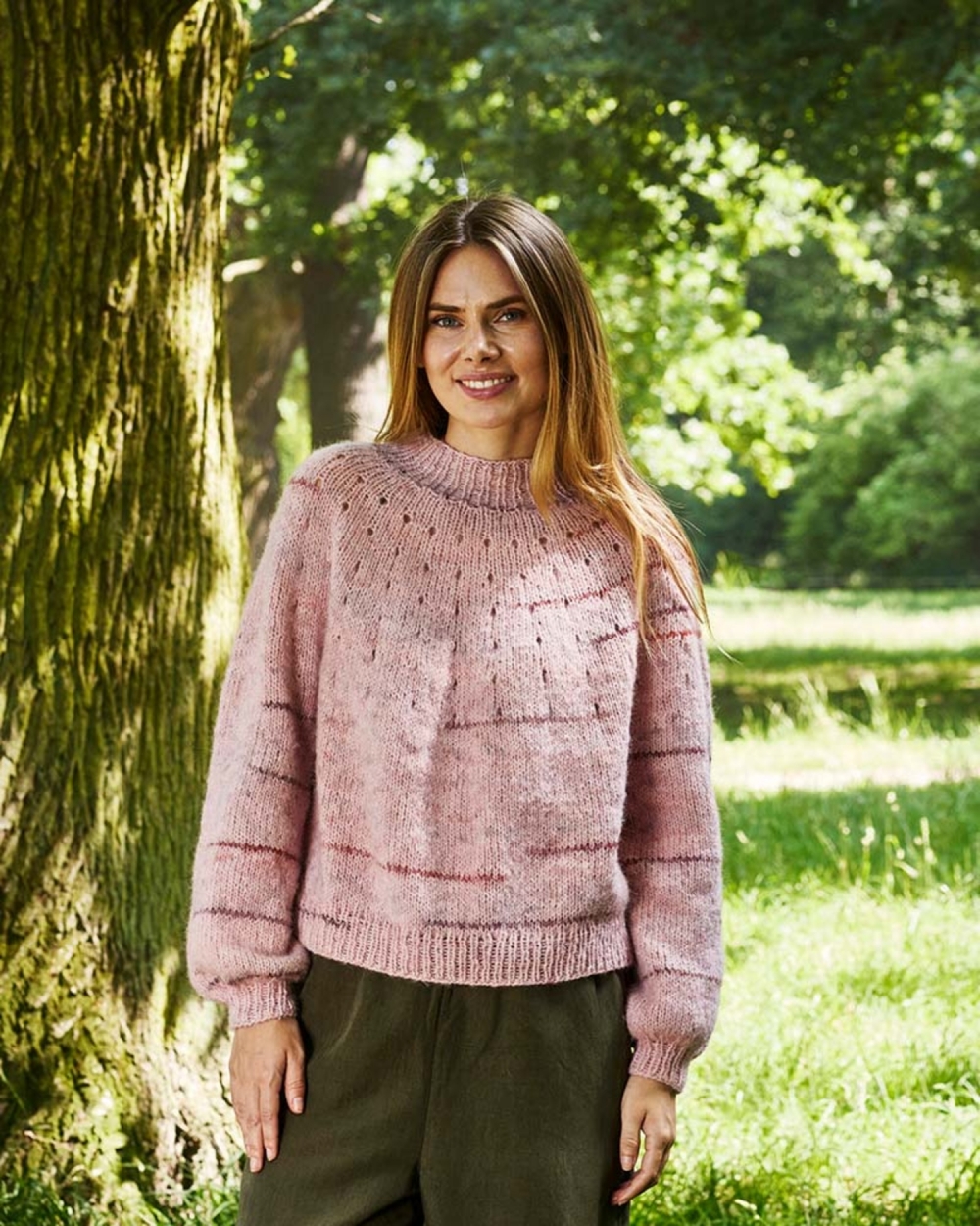 LeKnit Rosie Yoke Sweater Strikkepakke Peer Gynt og Tynn silk mohair