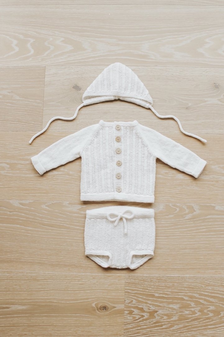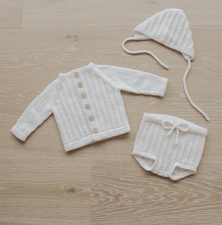 Strikkeoppskrift på Ventesettet (papirutgave) i Jord Clothing. Oppskriften selges kun sammen med garn.