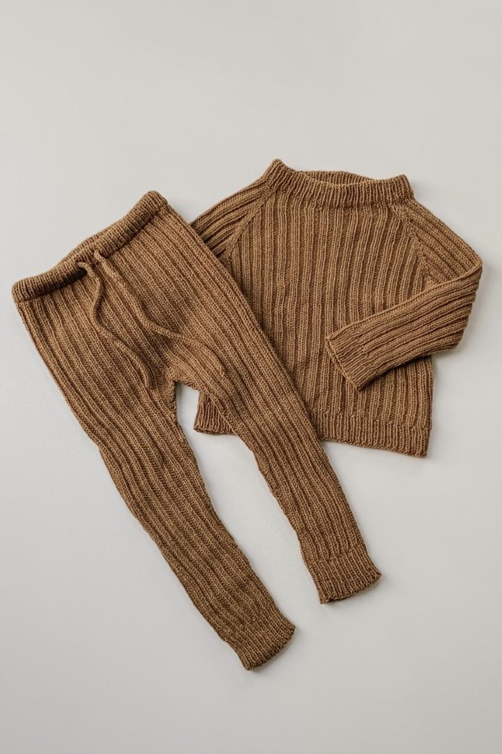 Strikkeoppskrift på Ribb Bukse fra Jord Clothing. Oppskriften selges kun sammen med garn.