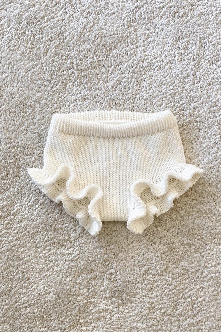 Norsk strikkeoppskrift. (selges kun sammen med garn) Sunny Bloomer strikkes nedenfra og opp i glattstrikk, med volang i ribb langs benkantene. Den kan enkelt varieres i ulike garnkvaliteter, for ulike uttrykk!