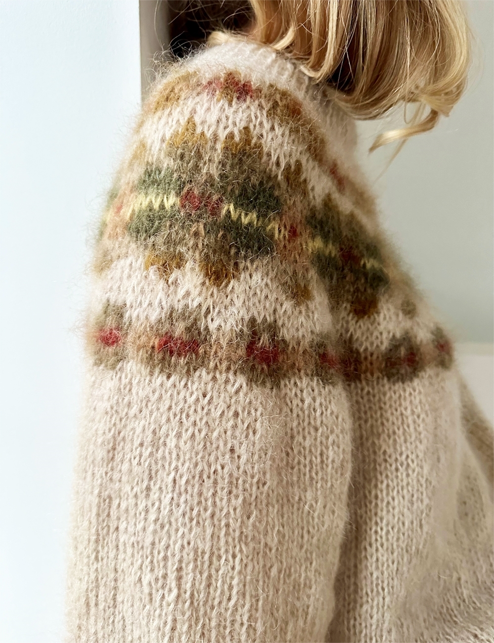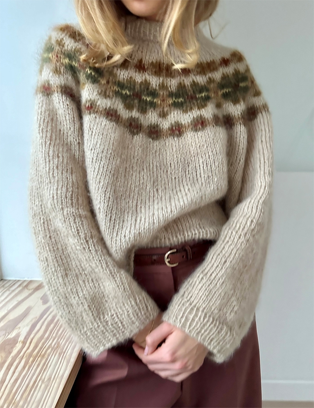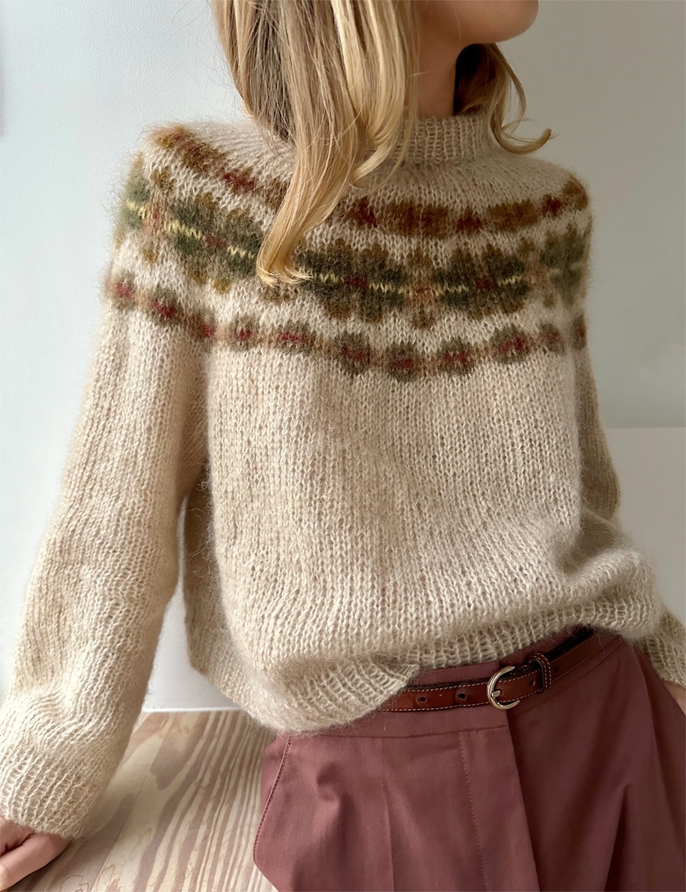 LeKnit Rosie Yoke Sweater Strikkepakke Peer Gynt og Tynn silk mohair