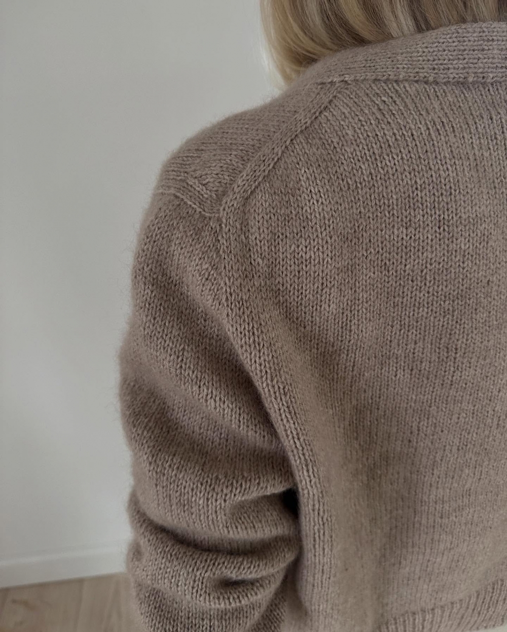 Enkeltoppskrift 11 LeKnit - Cardigan med v-hals strikket ovenfra og ned i 2 tråder tynn silk mohair og en tråd sunday. Oppskriften selges KUN sammen med garn.