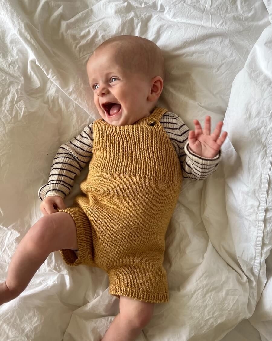 PetiteKnit – Enkeltoppskrift 144 - Teddy Pants strikket nedenfra og opp i Sunday. (selges kun sammen med garn)