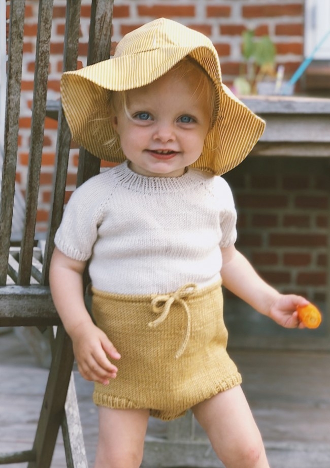 Bluse til baby og barn, strikket ovenfra og ned i SUNDAY PetiteKnit. Oppskrift fra Petite Knit selges kun sammen med garn.