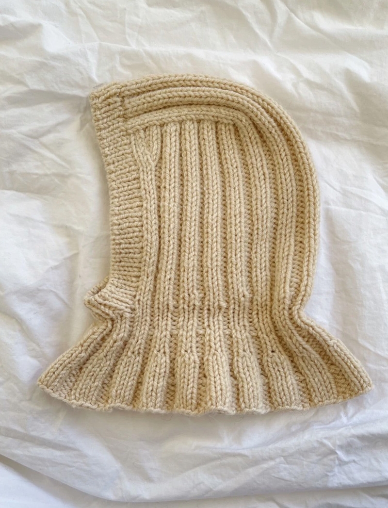 Oppskrift på Sunday balaclava til baby. Oppskriften selges kun sammen med garn! PetiteKnit – Enkeltoppskrift 152 - PetiteKnit Sunday Balaclava Baby strikkes ovenfra og ned i PetiteKnit Double Sunday