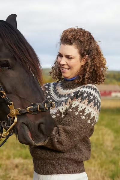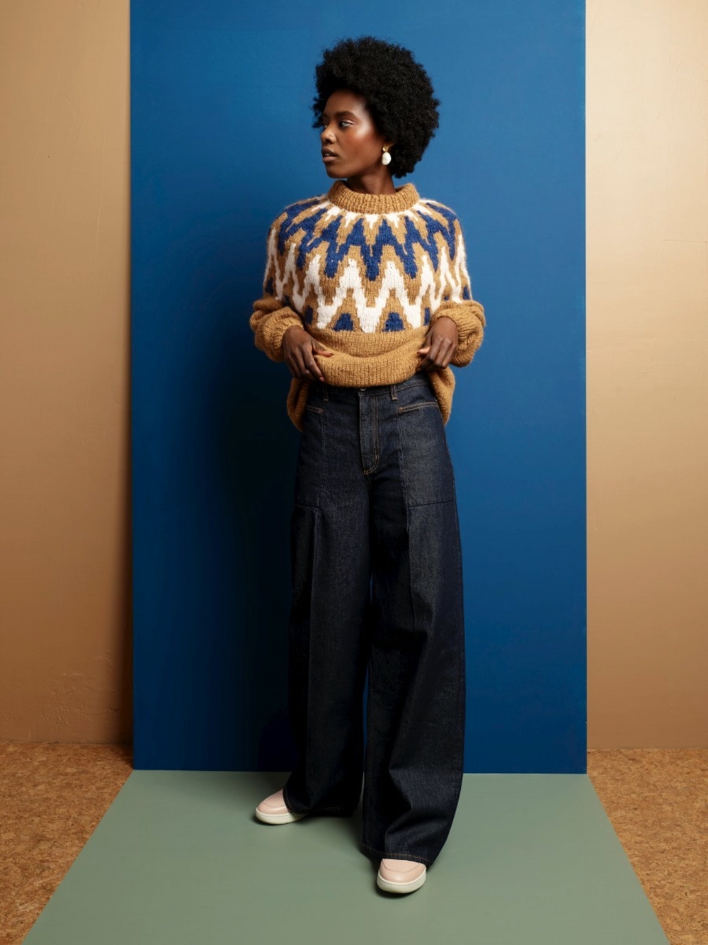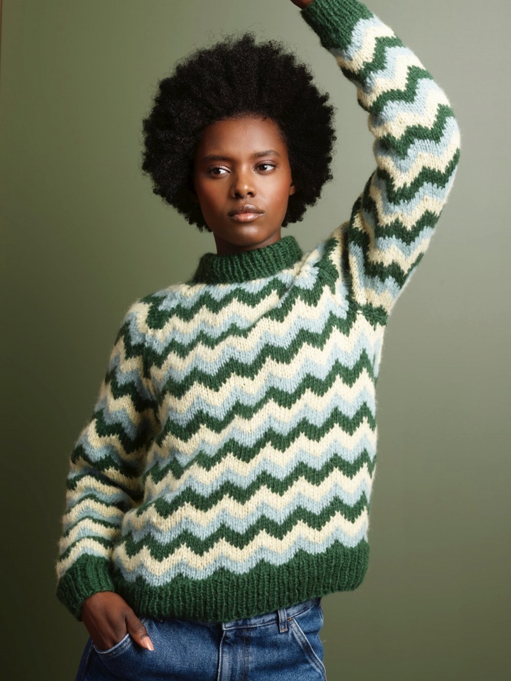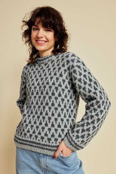 LeKnit Rosie Yoke Sweater Strikkepakke Peer Gynt og Tynn silk mohair