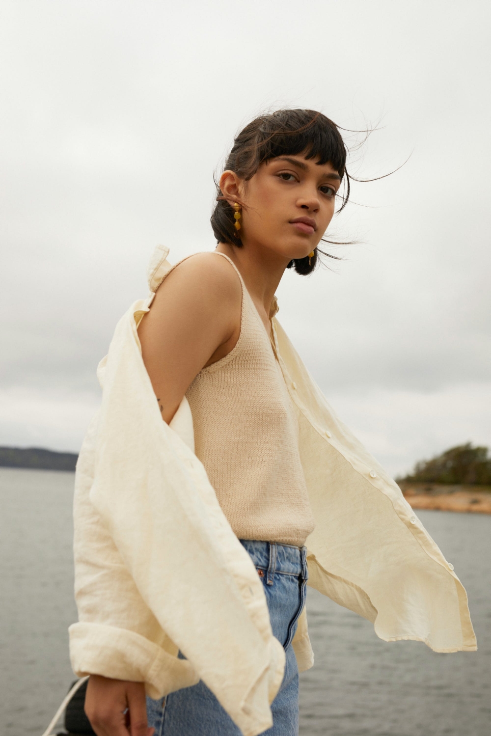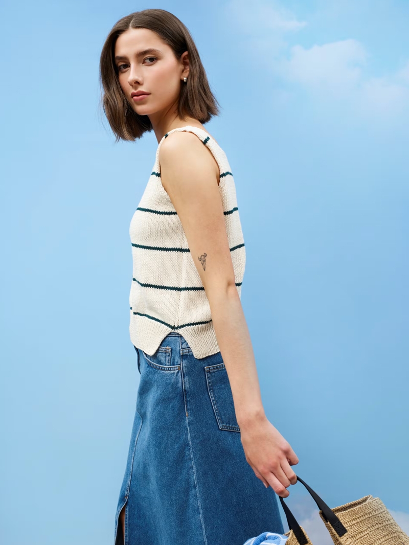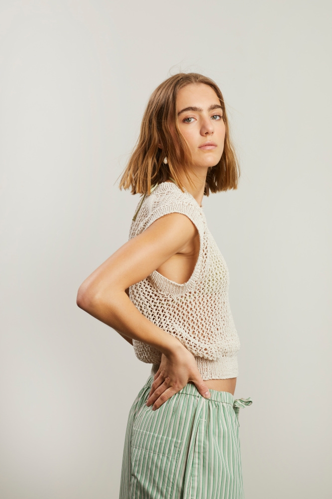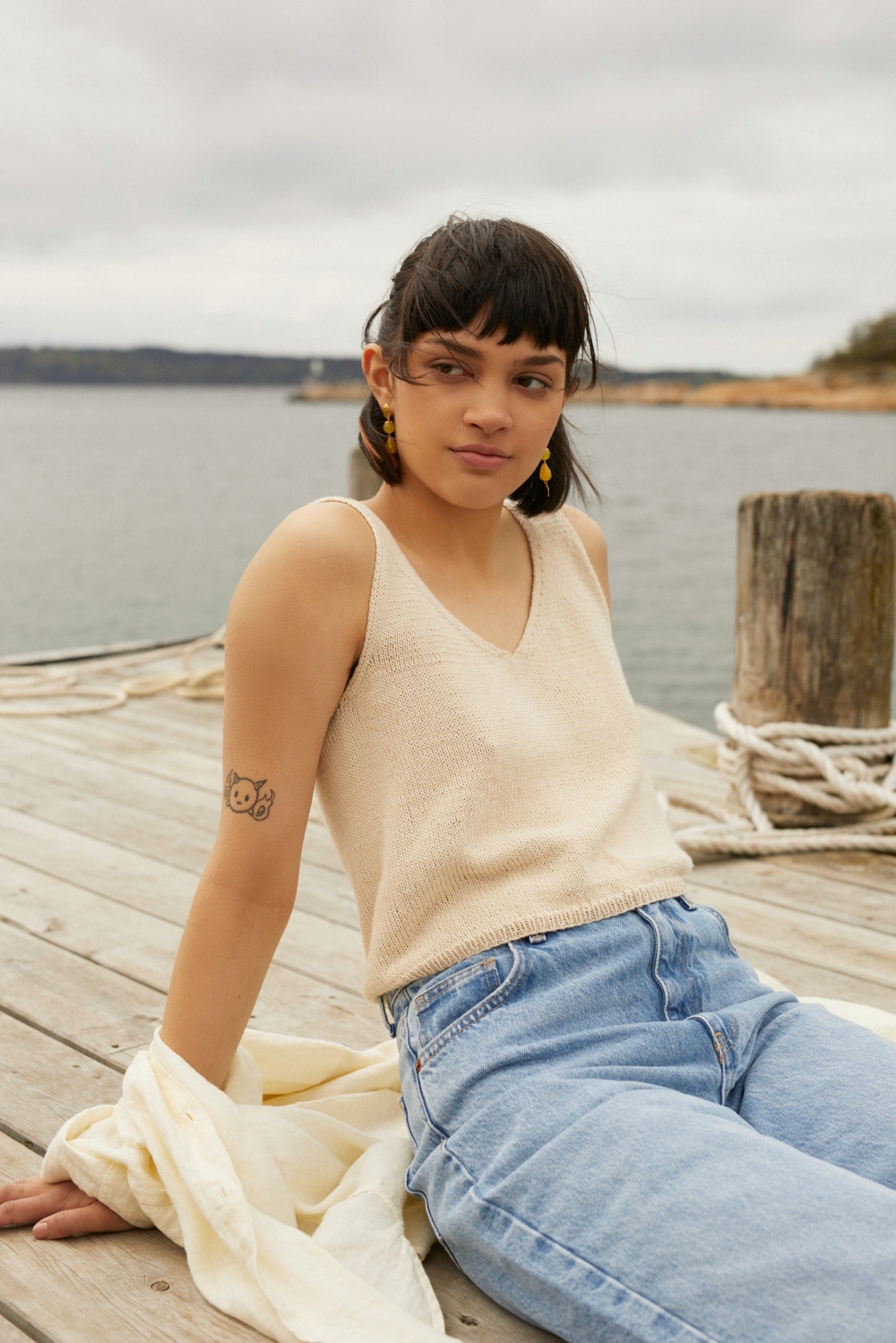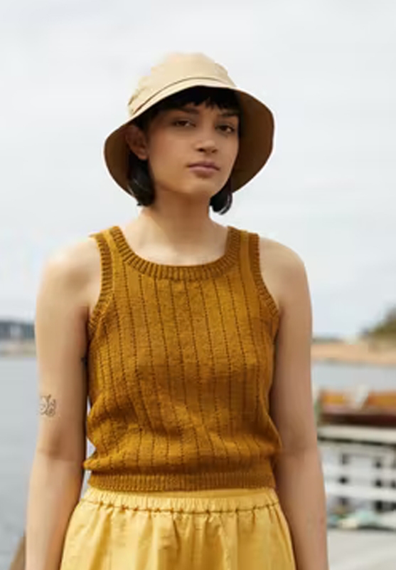 Pir singlet er en stripete singlet med rund hals. Vi selger oppskriften kun sammen med garn til hele plagget (fra Rauma Garn)
