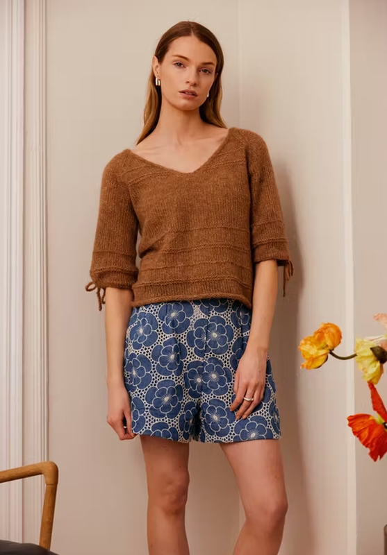 LeKnit Rosie Yoke Sweater Strikkepakke Peer Gynt og Tynn silk mohair