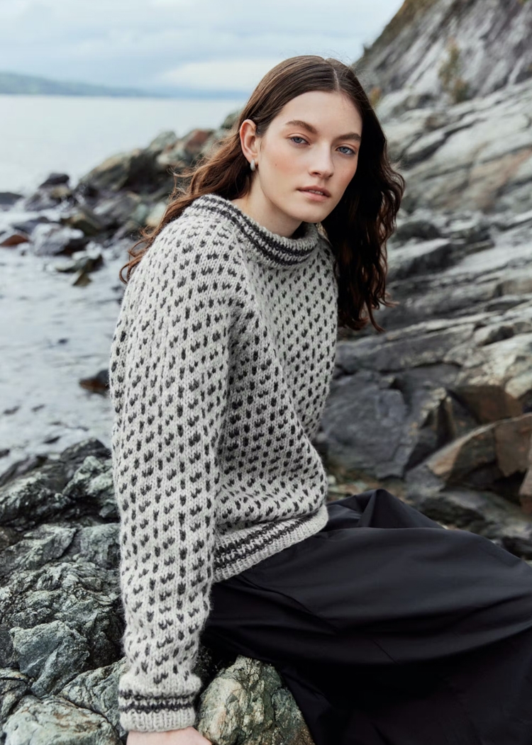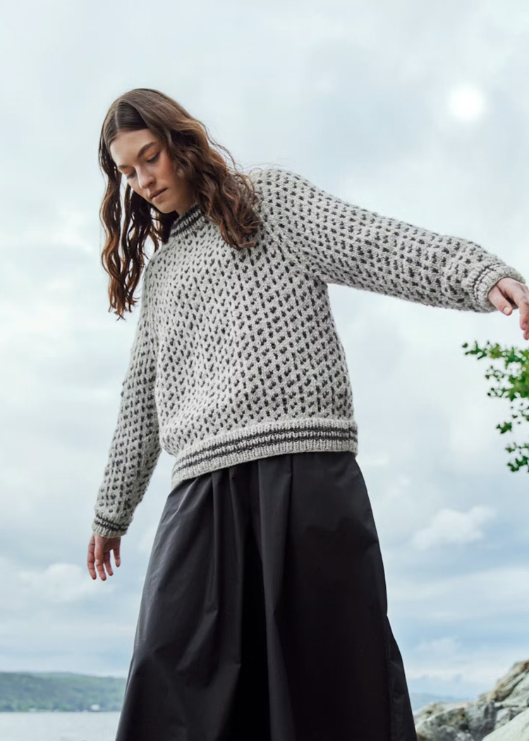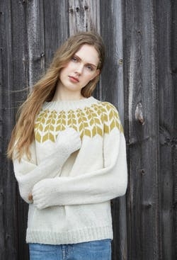 LeKnit Rosie Yoke Sweater Strikkepakke Peer Gynt og Tynn silk mohair