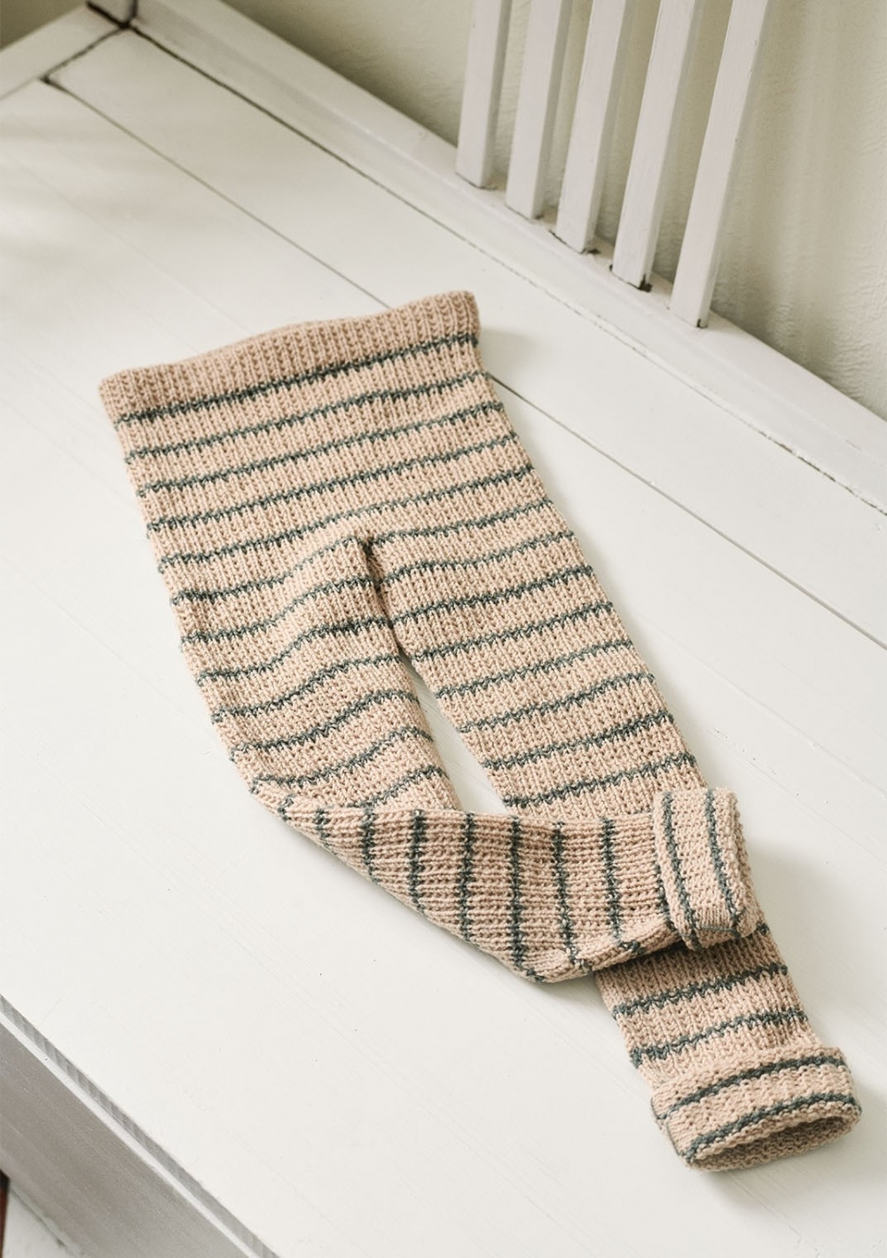Bukse i perleribb, strikket i Sunday. Oppskriften selges kun sammen med garn, minimum 4 nøster.