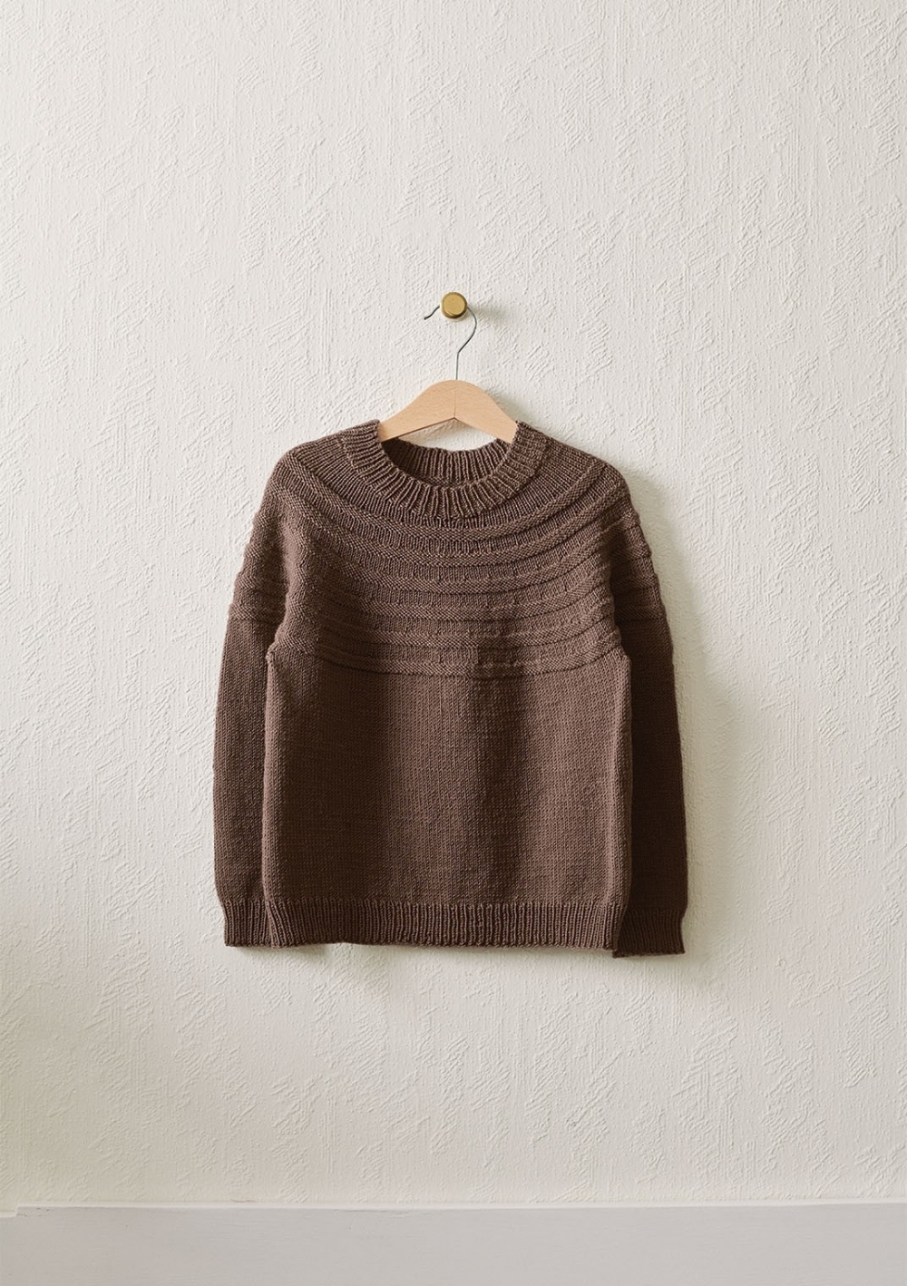 Genser med rundt bærestykke, strikket i Tynn Merinoull . Oppskriften selges kun sammen med garn.